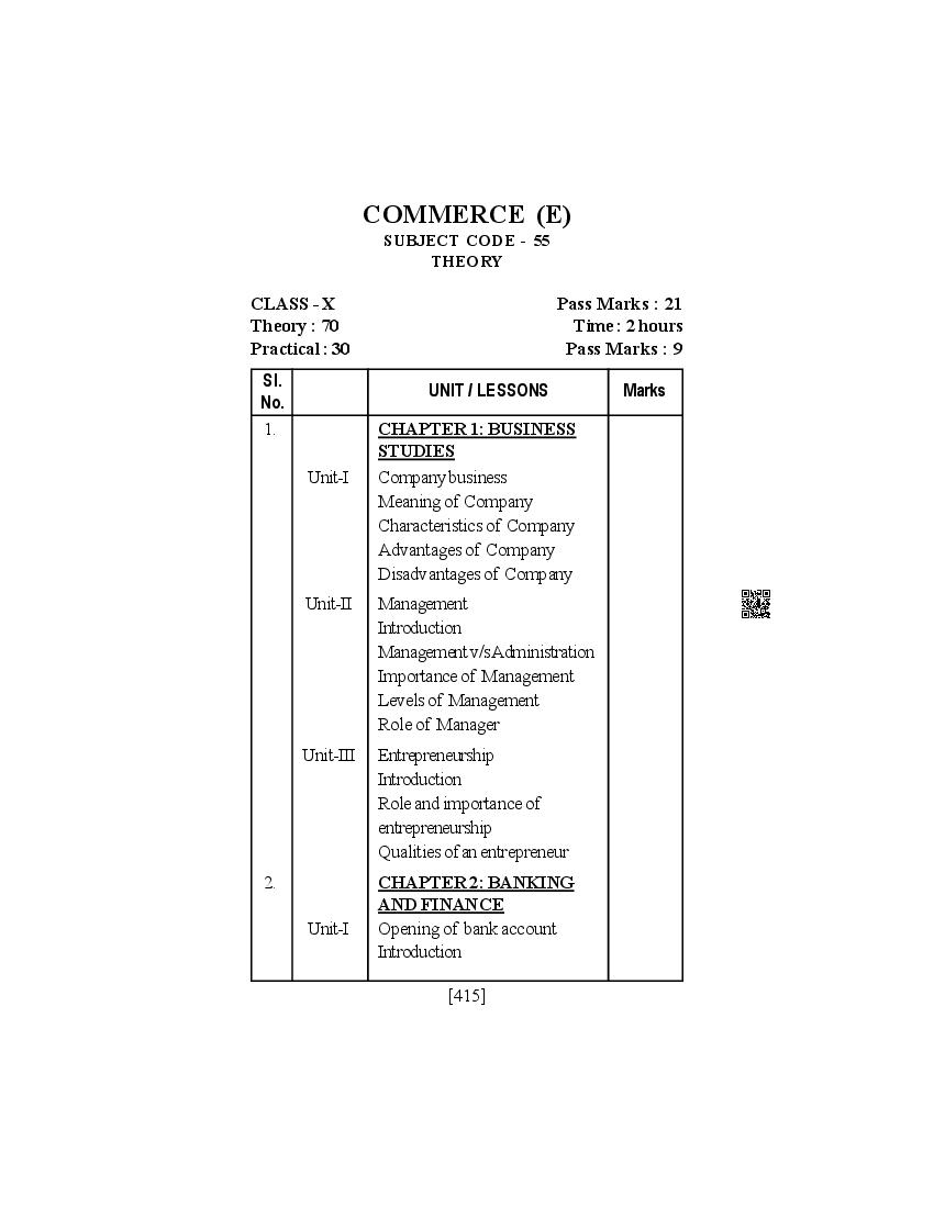 SEBA Class 9th & Class 10th Syllabus 2026 Commerce View Download