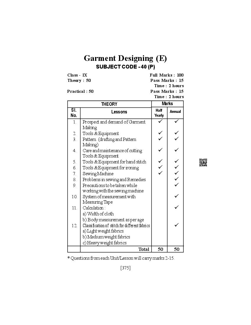| Resource Here | SEBA 9th Syllabus for Garment Designing |