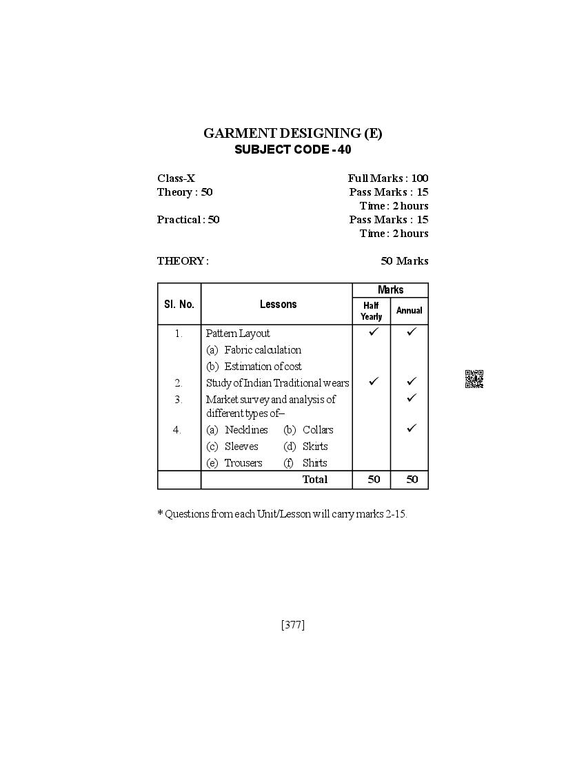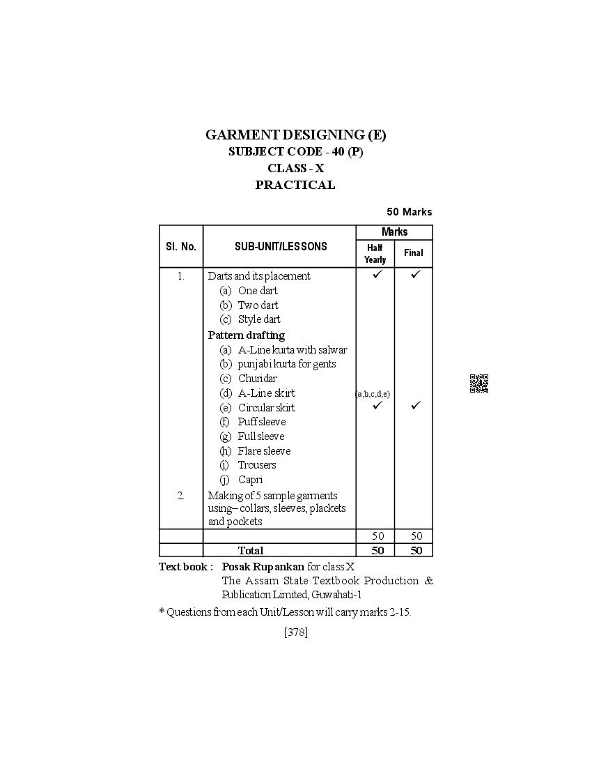 The SEBA syllabus for 9th (Class 9) Garment Designing is as follows.
