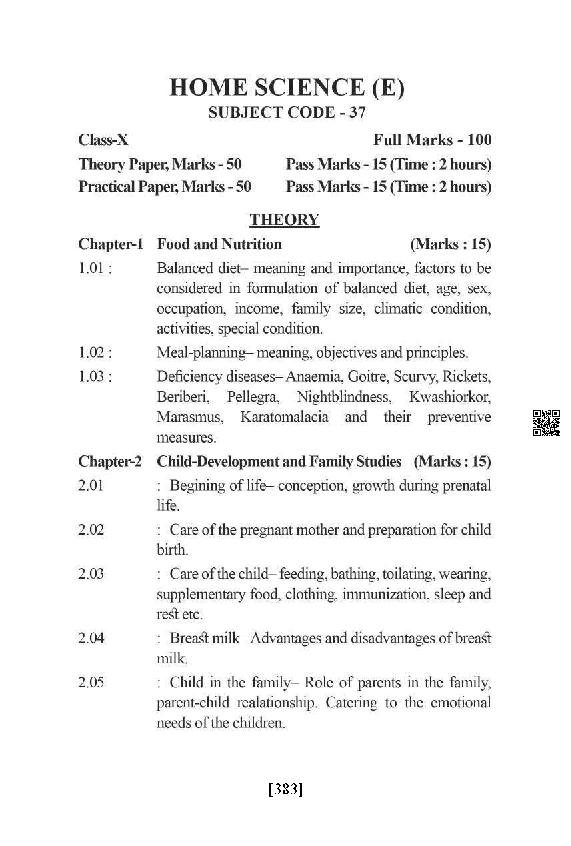 | Resource Here | SEBA 9th Syllabus for Home Science |