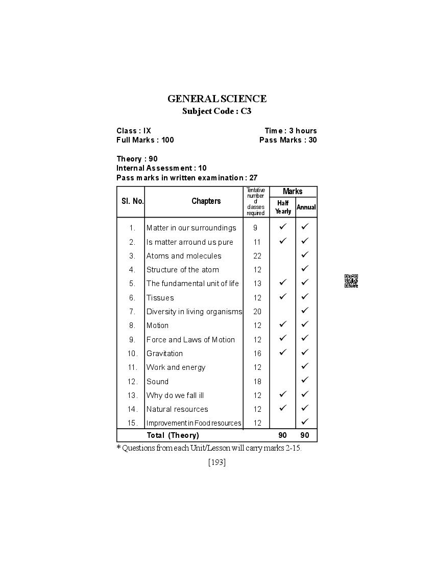 SEBA Class 9th & Class 10th Syllabus 2026 General Science View Download
