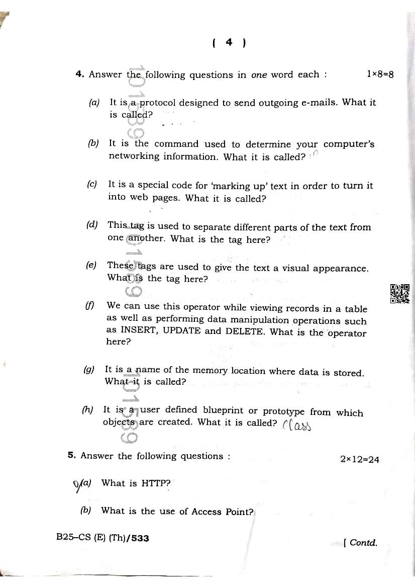| Educational Resource Here | Assam Board Previous Year Question Paper of Class 10 Computer Science |