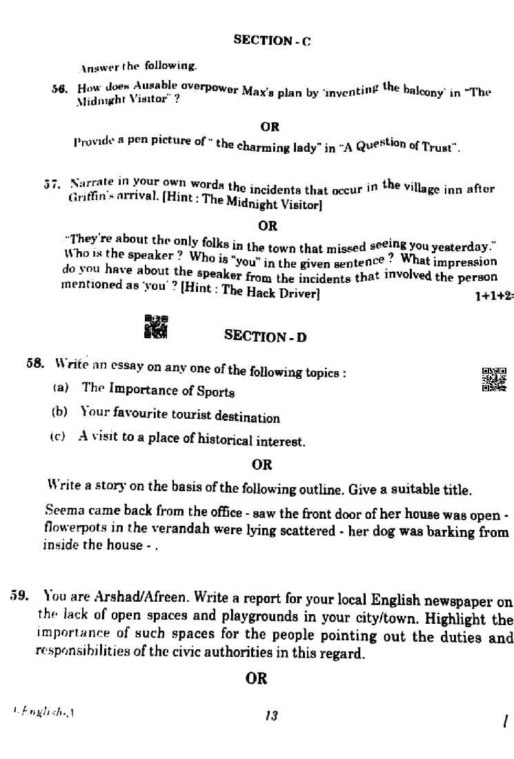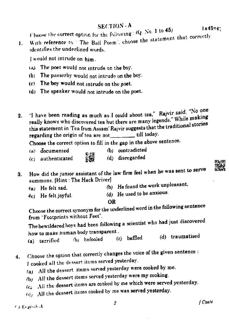 The Assam Board Previous Year Question Paper for HSLC (Class 10) English is as follows.