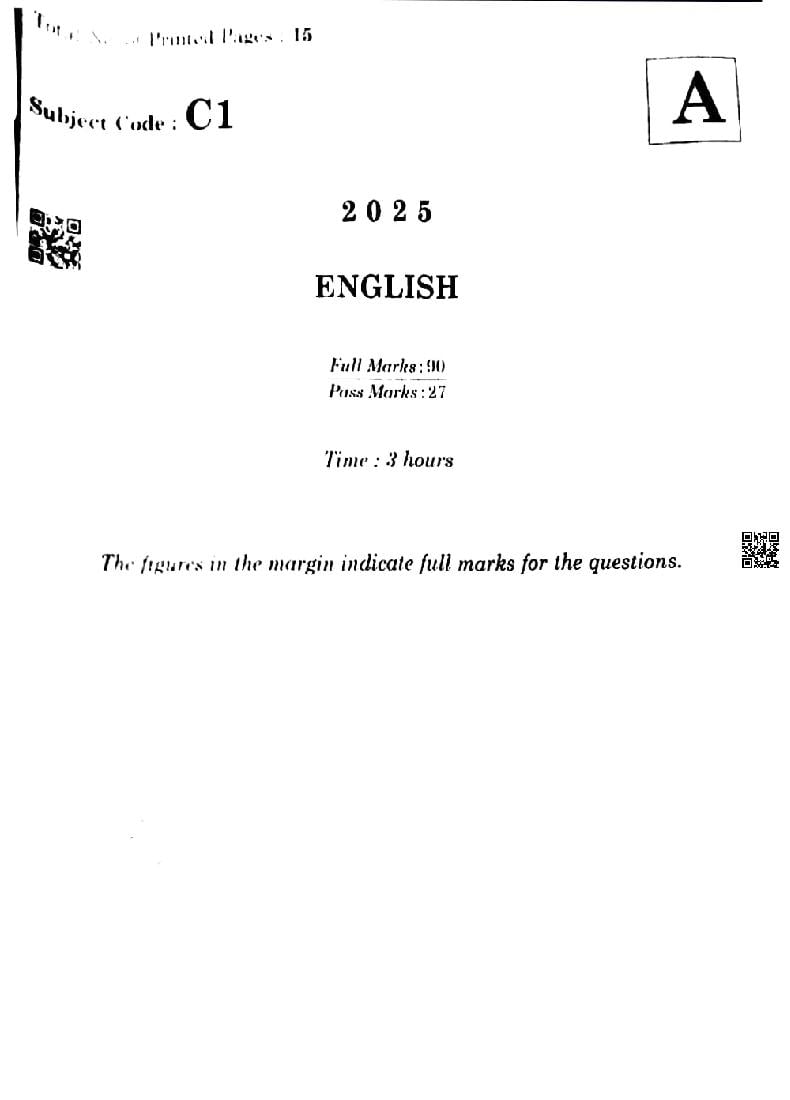 SEBA HSLC English Question Paper 2025 PDF Download Link – Click Here to Download Question Paper PDF