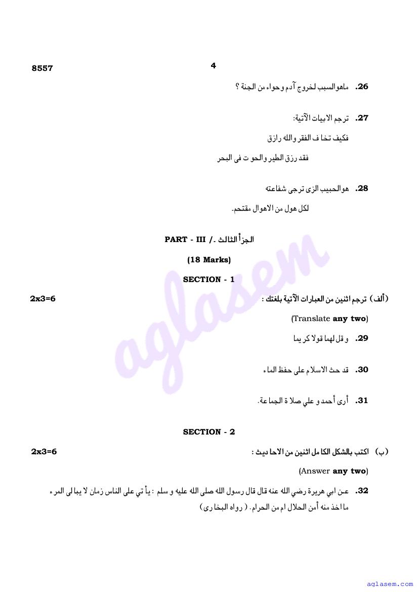 The Tamil Nadu Board Model Paper for class 10 Arabic is as follows.