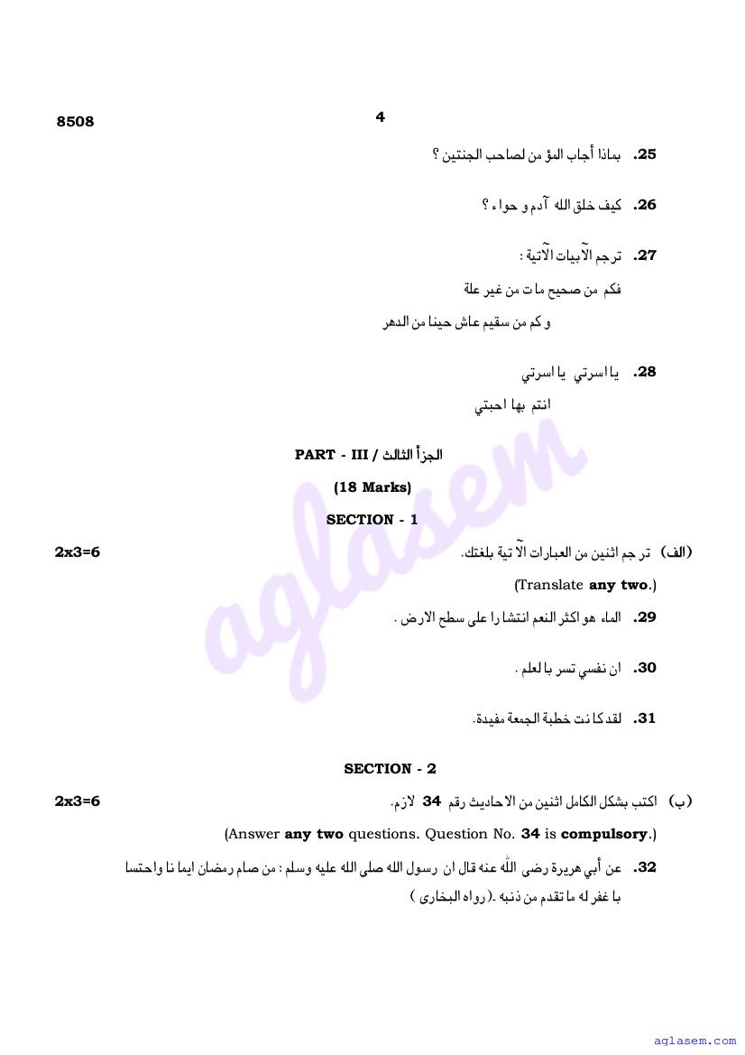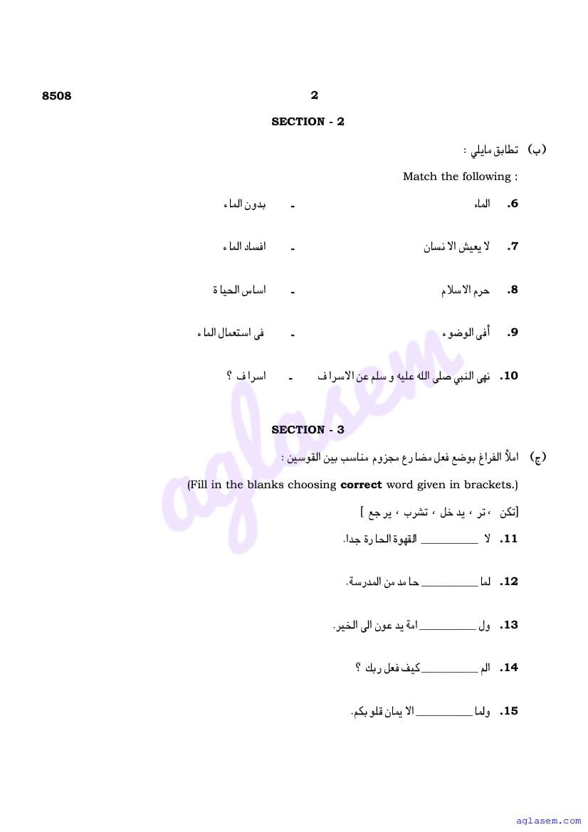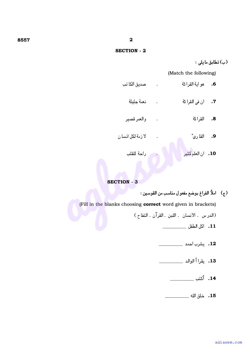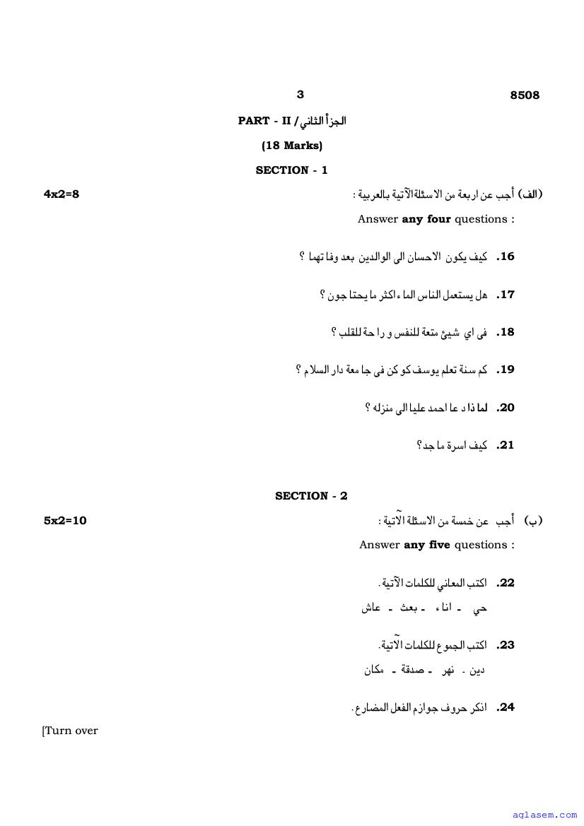 | Study Material Here | Tamil Nadu Board Model Question Paper for Class 10 Arabic |
