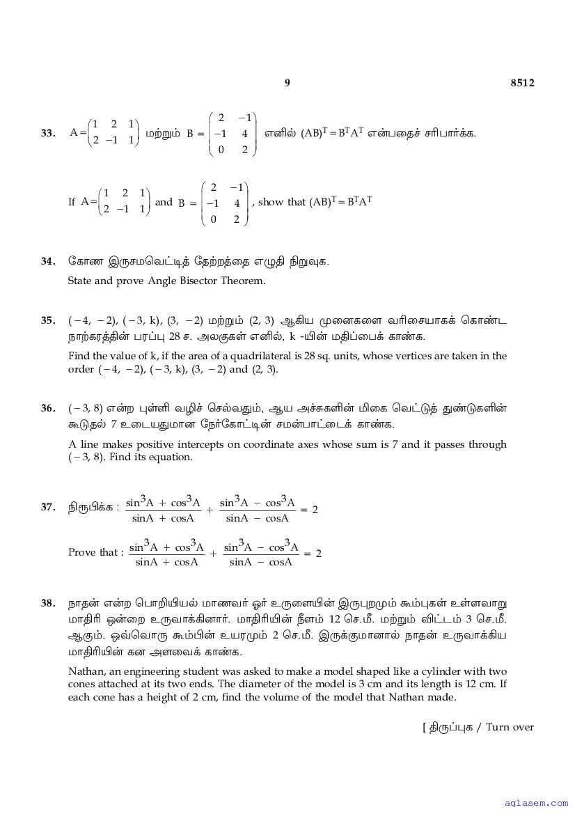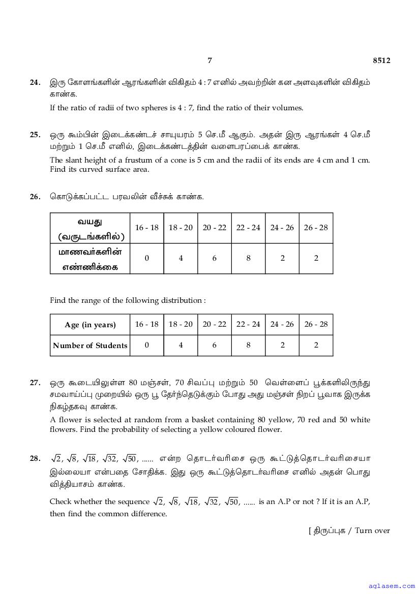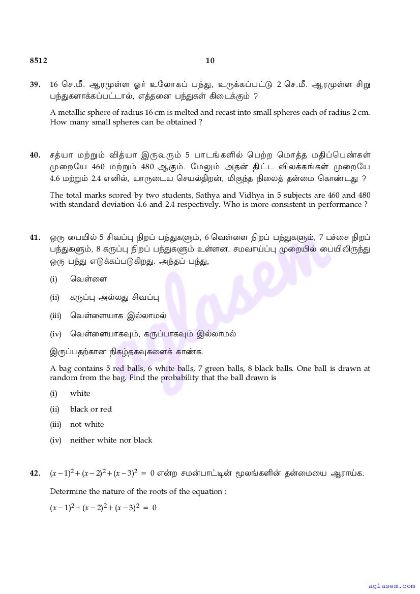 The Tamil Nadu Board Model Paper for class 10 Maths is as follows.