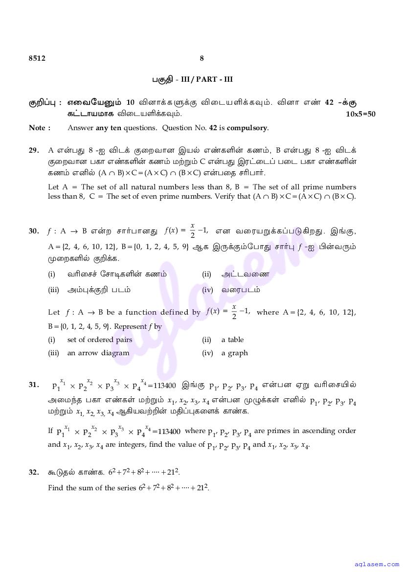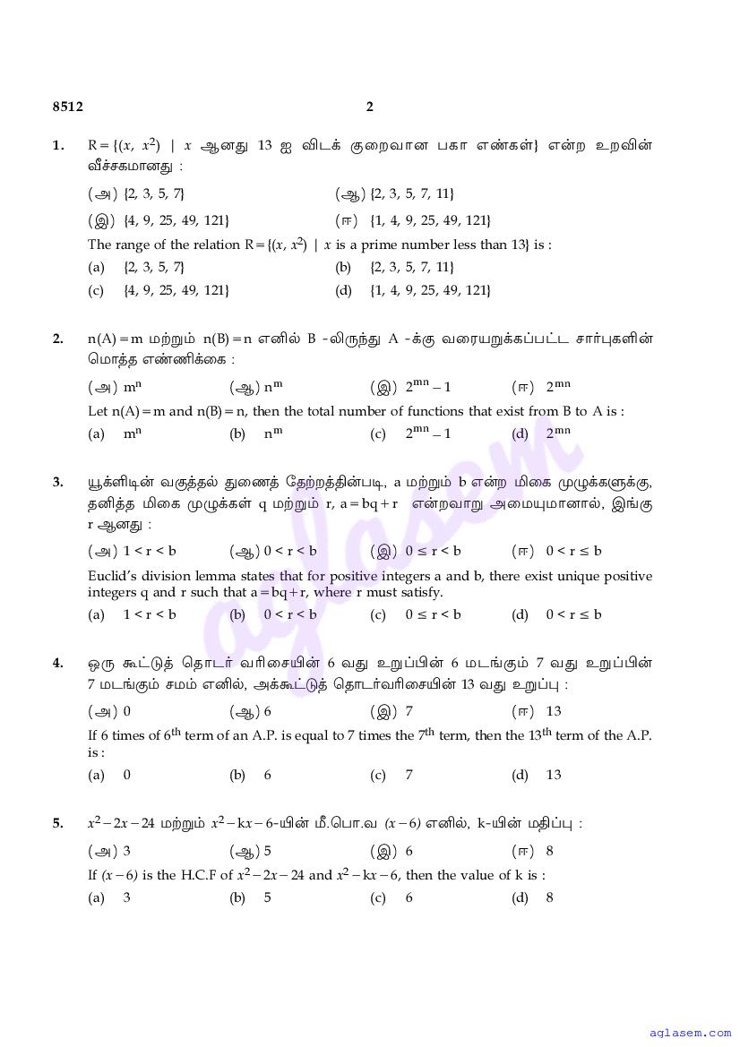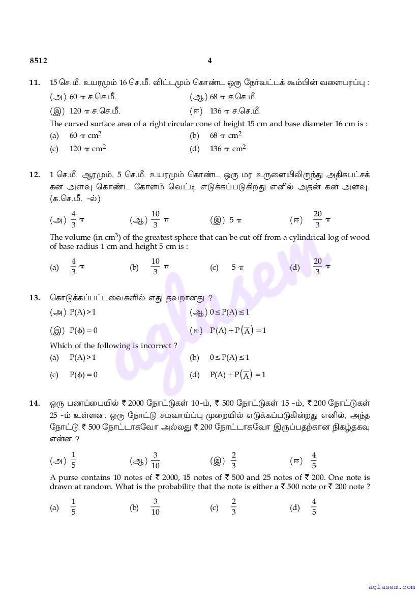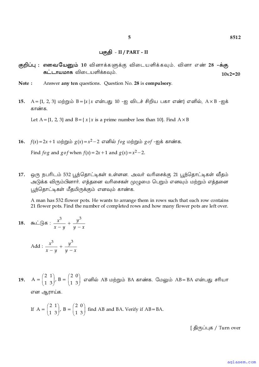 The Tamil Nadu Board Model Paper for class 10 Maths is as follows.