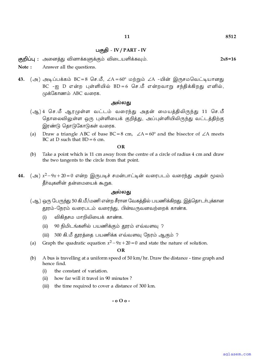 | Study Material Here | Tamil Nadu Board Model Question Paper for Class 10 Maths |