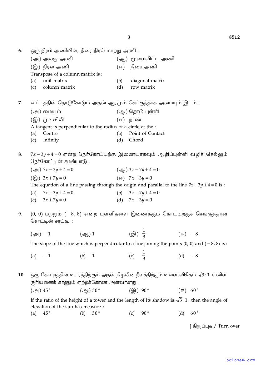 | Previous Year Question Papers | Tamil Nadu Board Class 10 Question Papers |