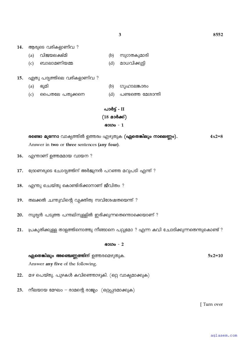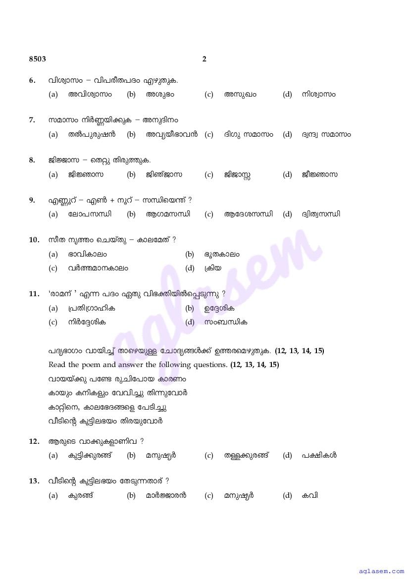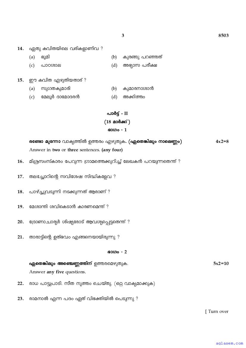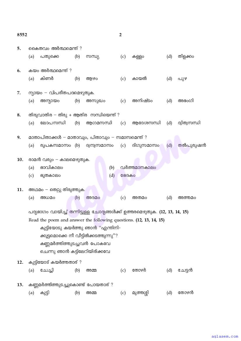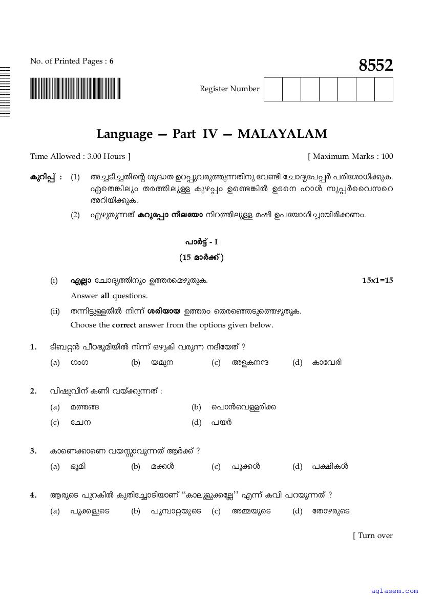 | Subject | Malayalam |