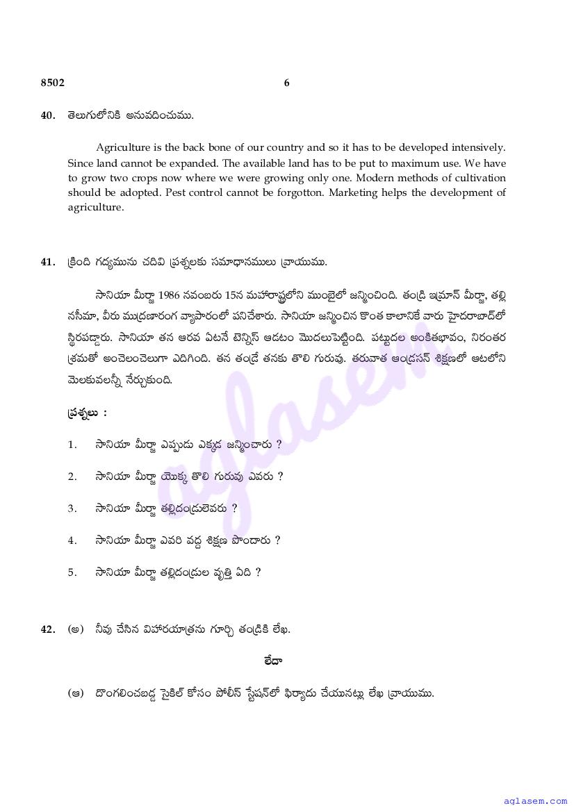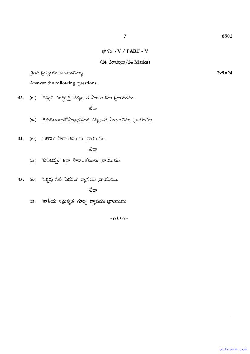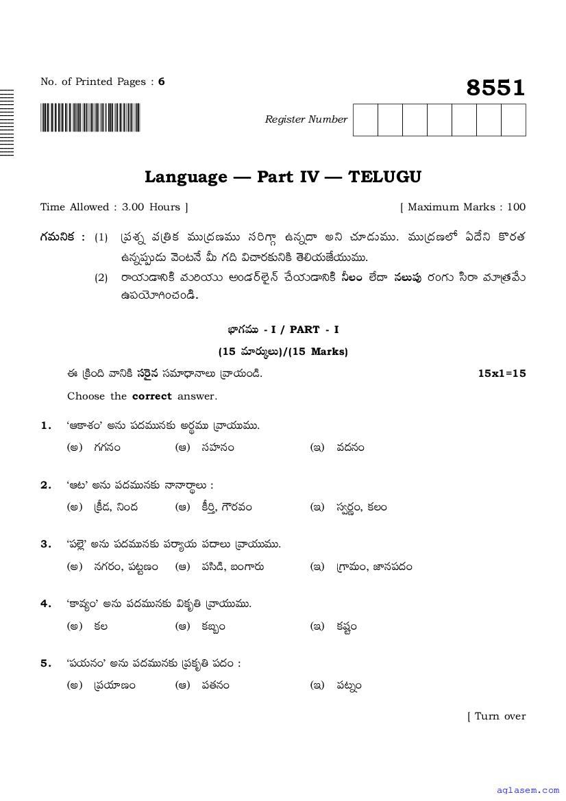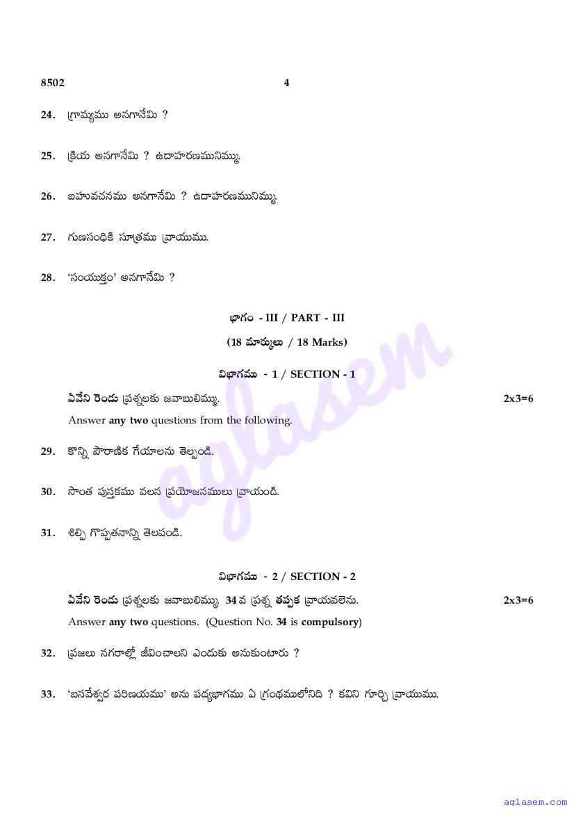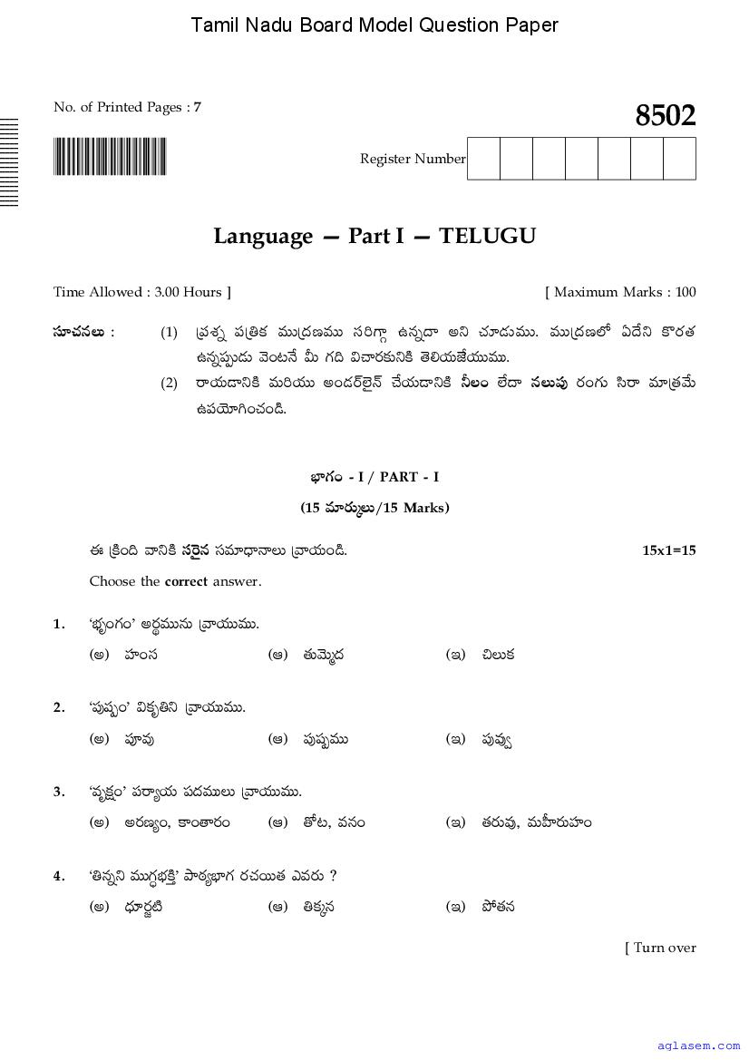 The Tamil Nadu Board Model Paper for class 10 Telugu is as follows.