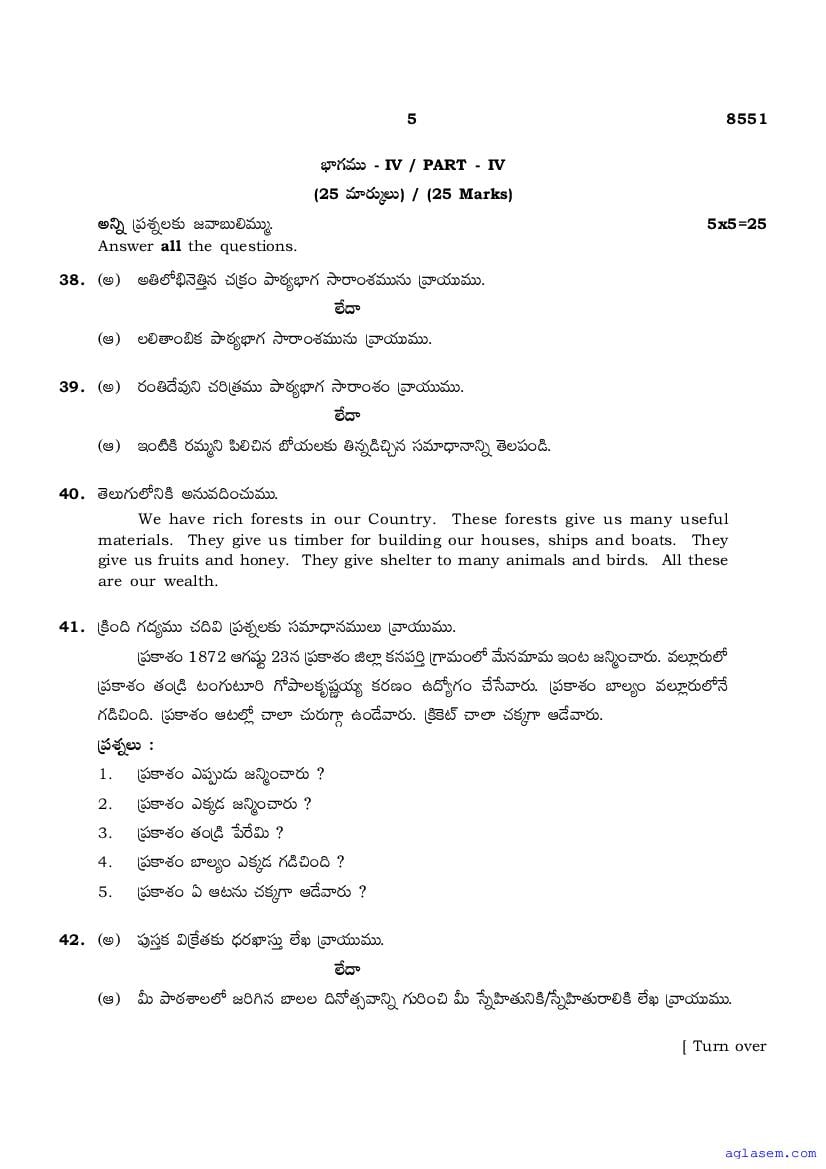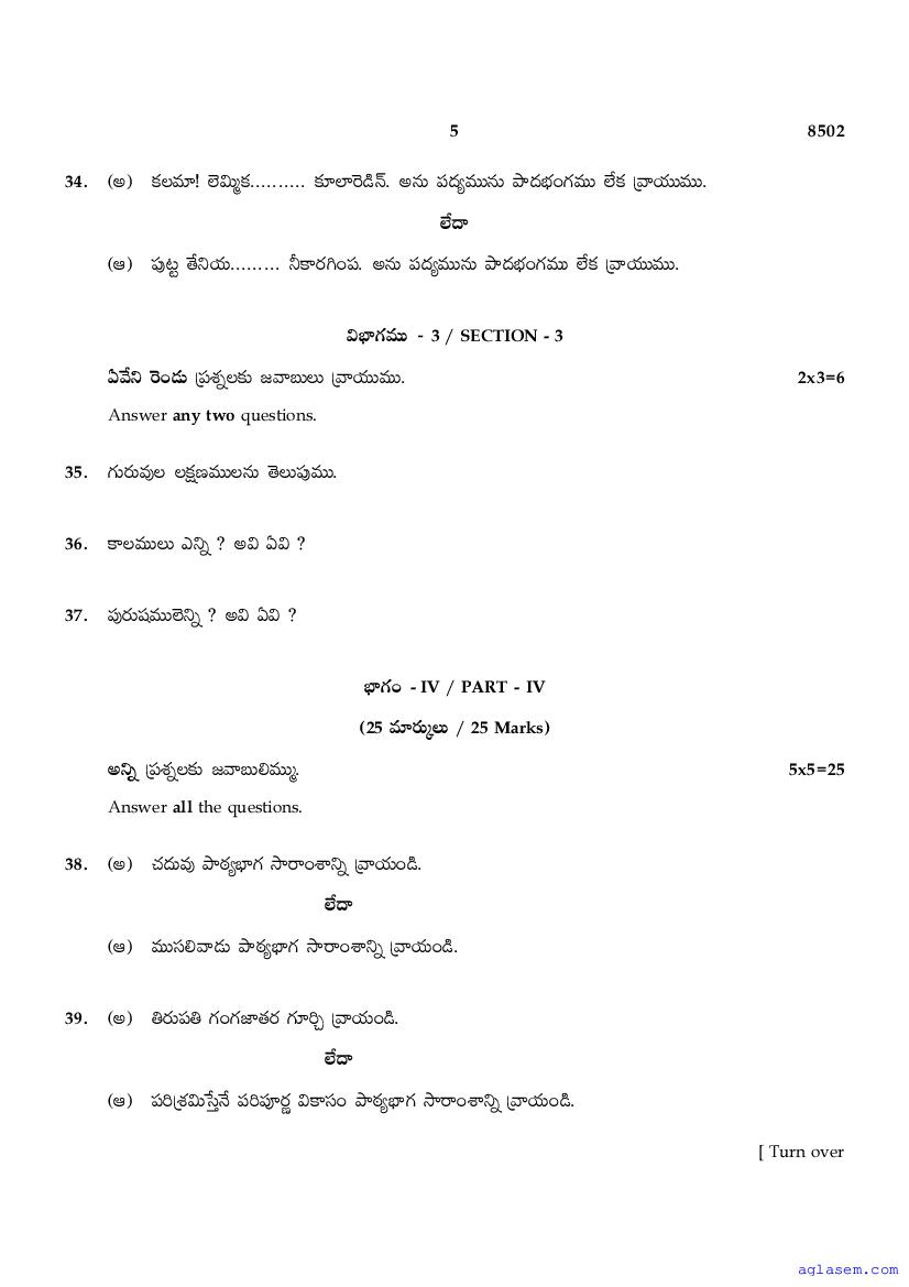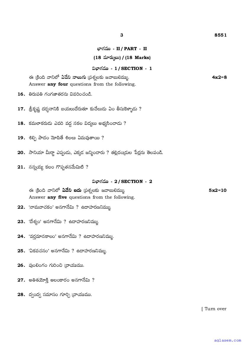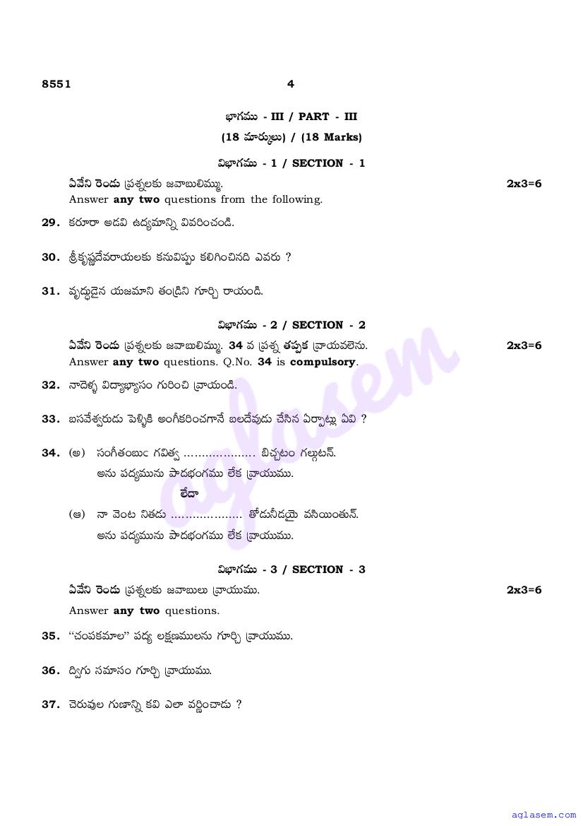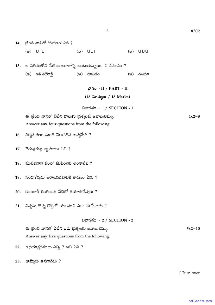 The Tamil Nadu Board Model Paper for class 10 Telugu is as follows.