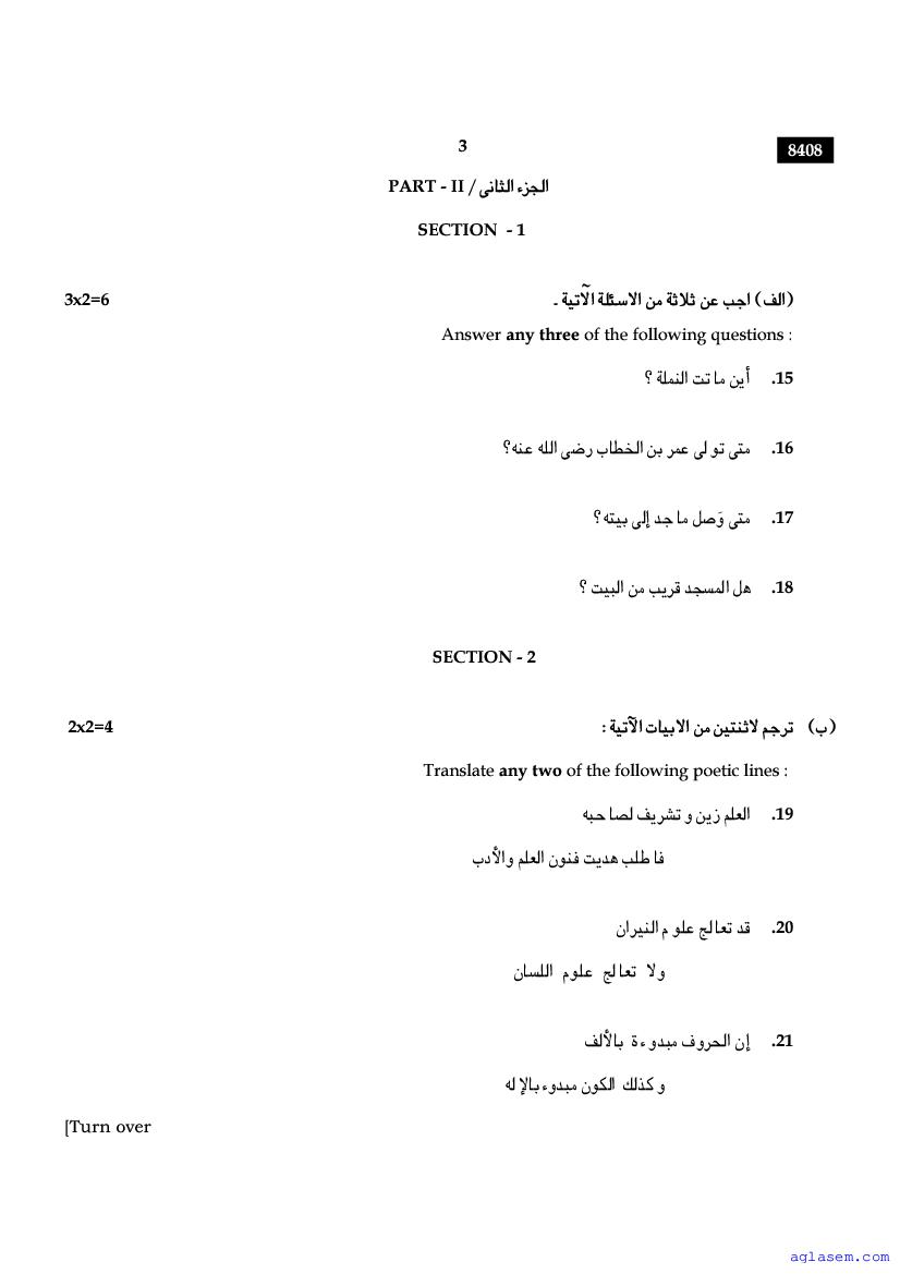| Study Material Here | Tamil Nadu Board Model Question Paper for Class 11 Arabic |