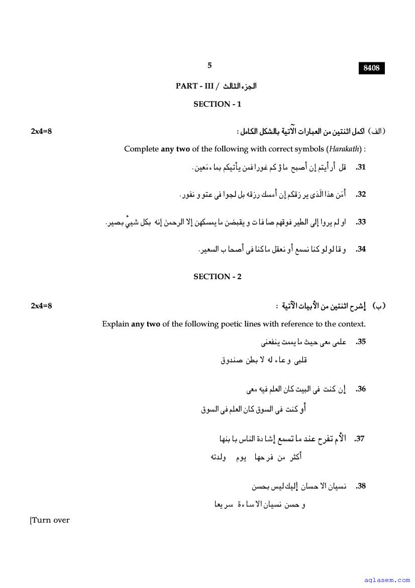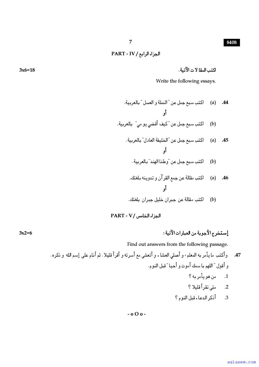 The Tamil Nadu Board Model Paper for class 11 Arabic is as follows.