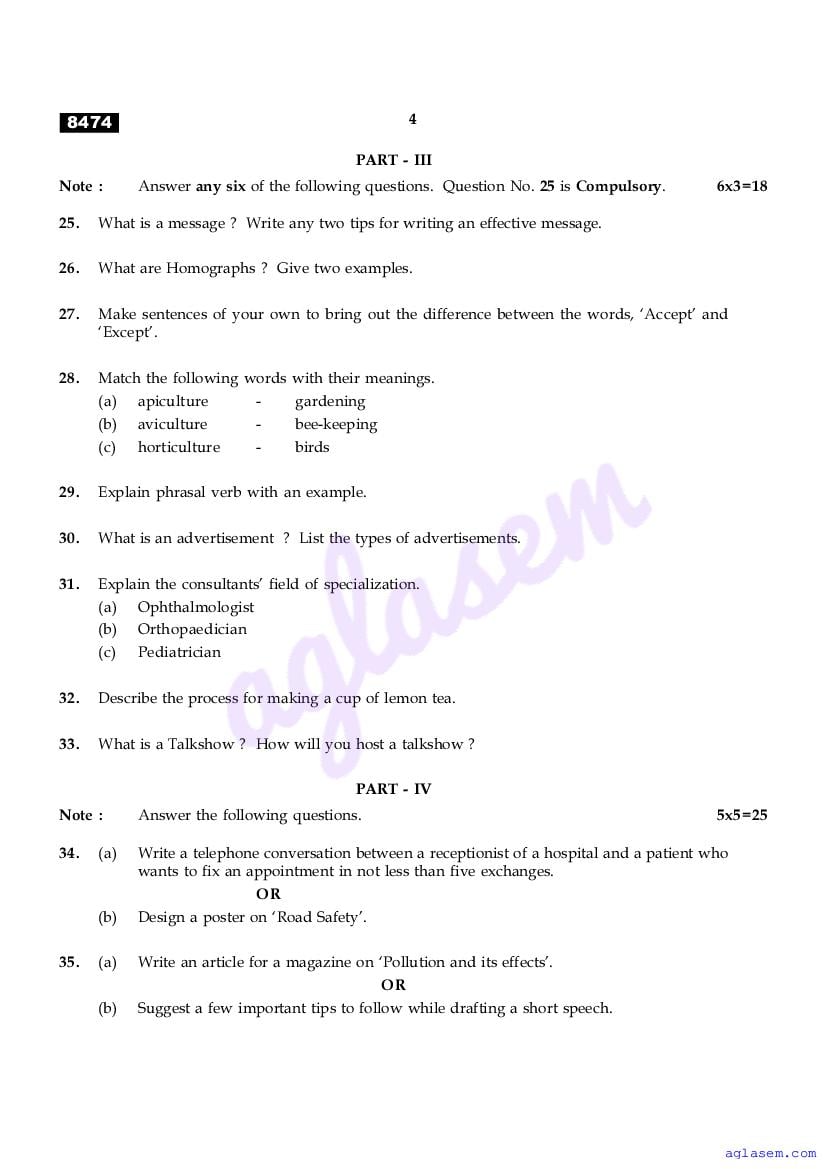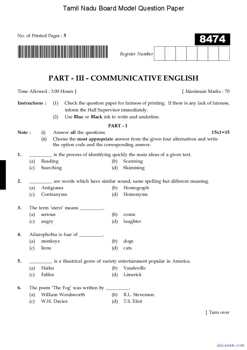 The Tamil Nadu Board Model Paper for class 11 English Communicative is as follows.