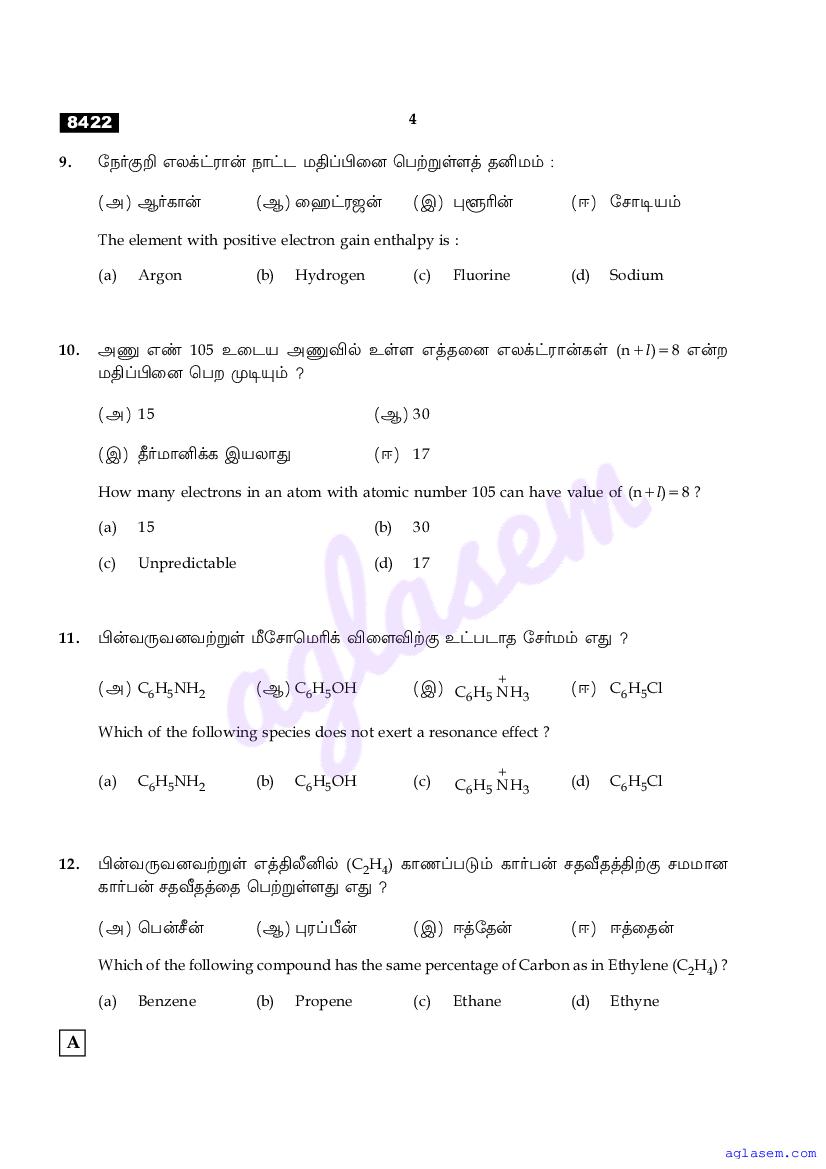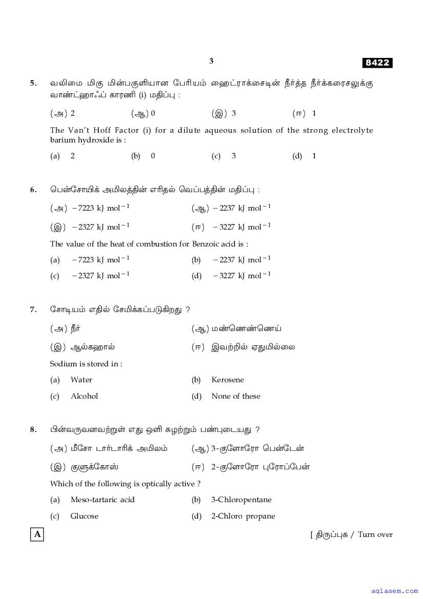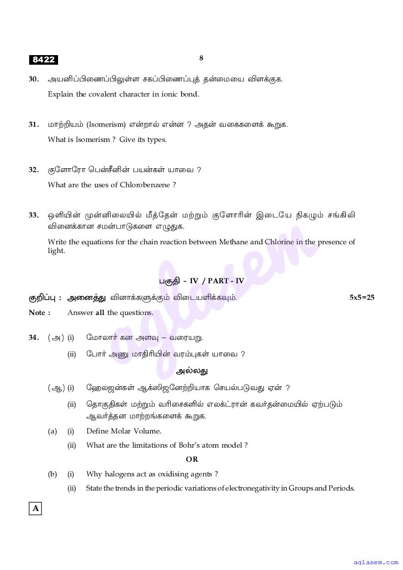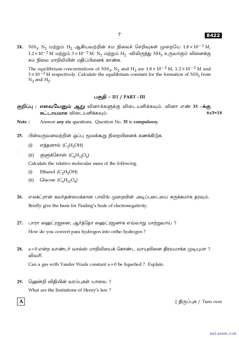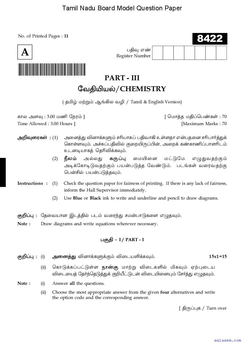 | Study Material Here | Tamil Nadu Board Model Question Paper for Class 11 Chemistry |