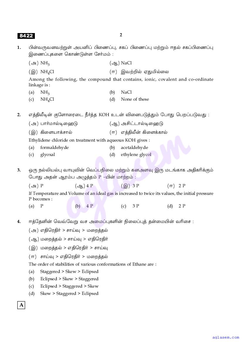 The Tamil Nadu Board Model Paper for class 11 Chemistry is as follows.
