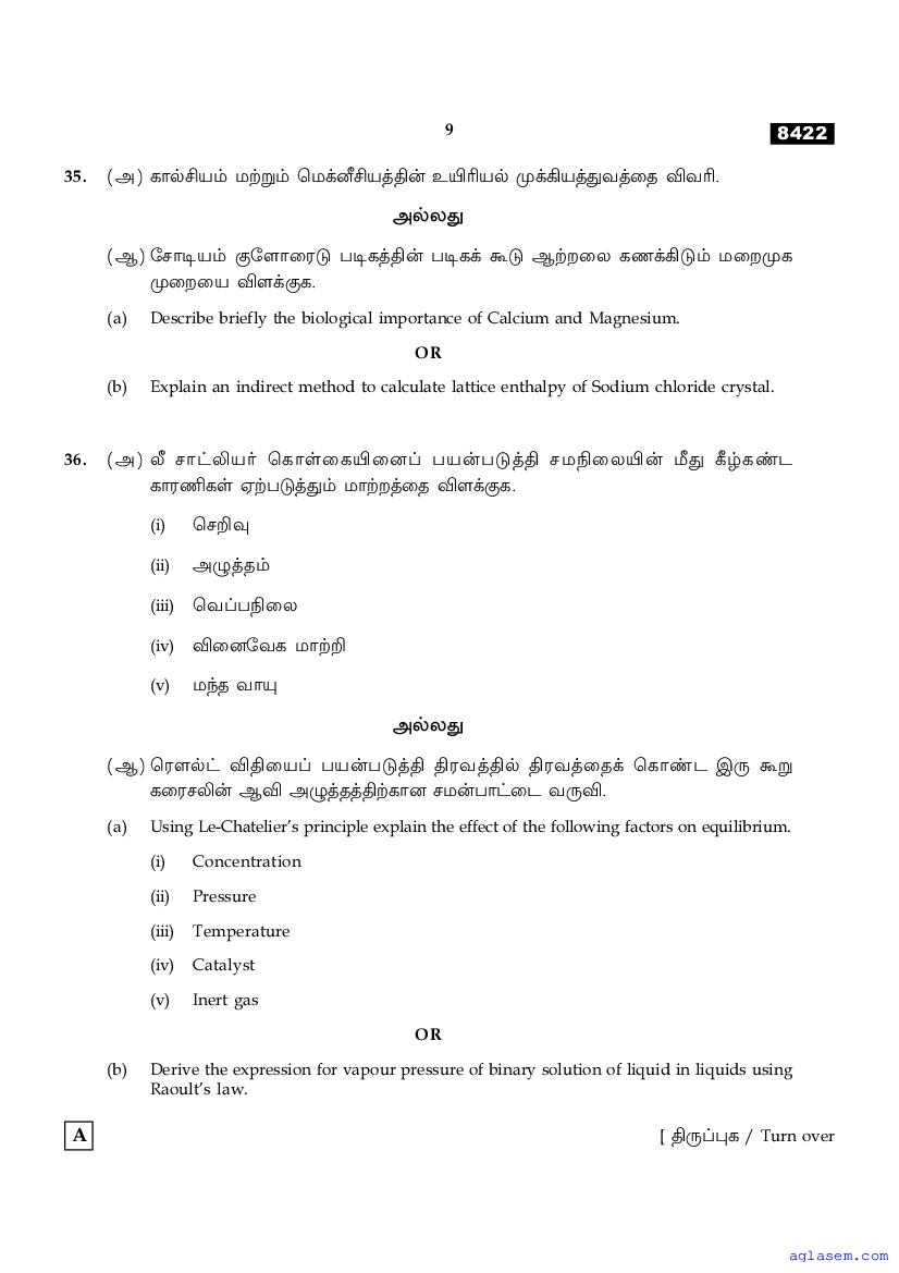 Tamil Nadu 11th Std Model Question Paper 2026 Chemistry View Download
