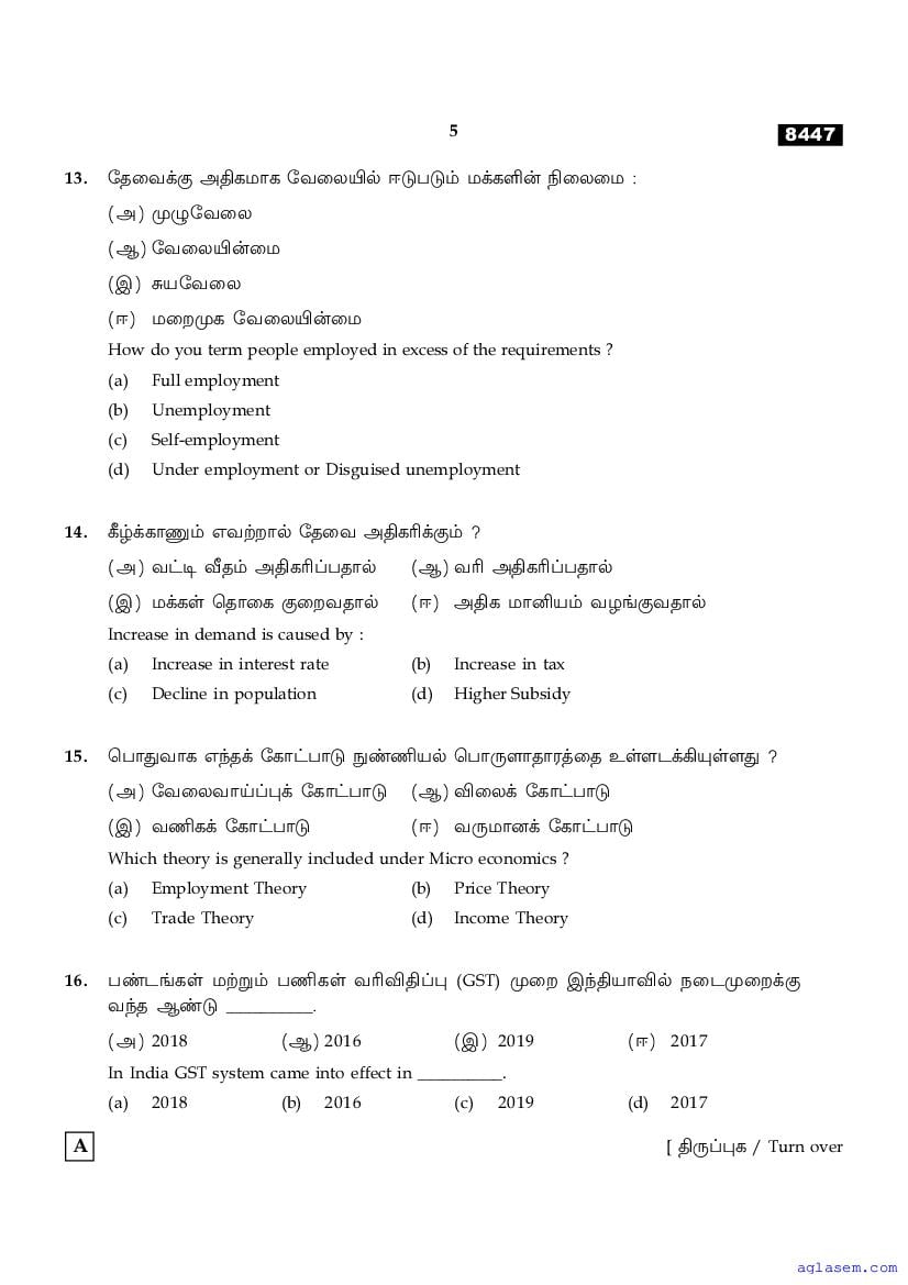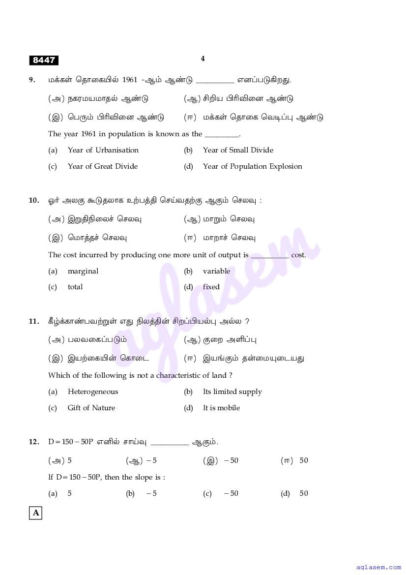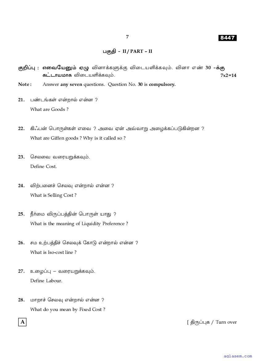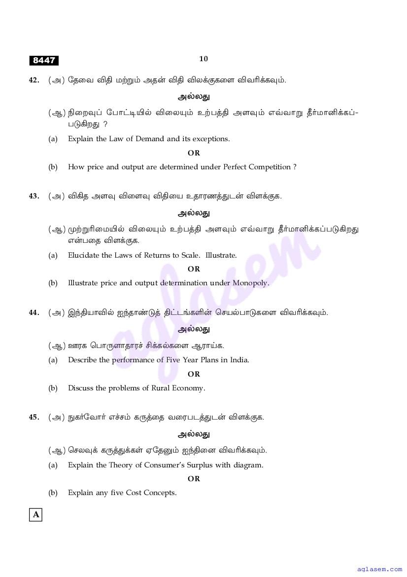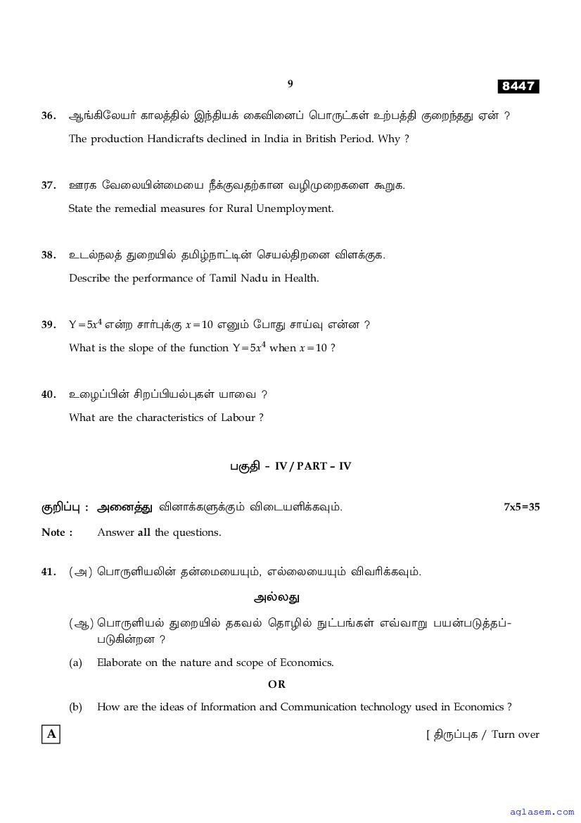 | Study Material Here | Tamil Nadu Board Model Question Paper for Class 11 Economics |