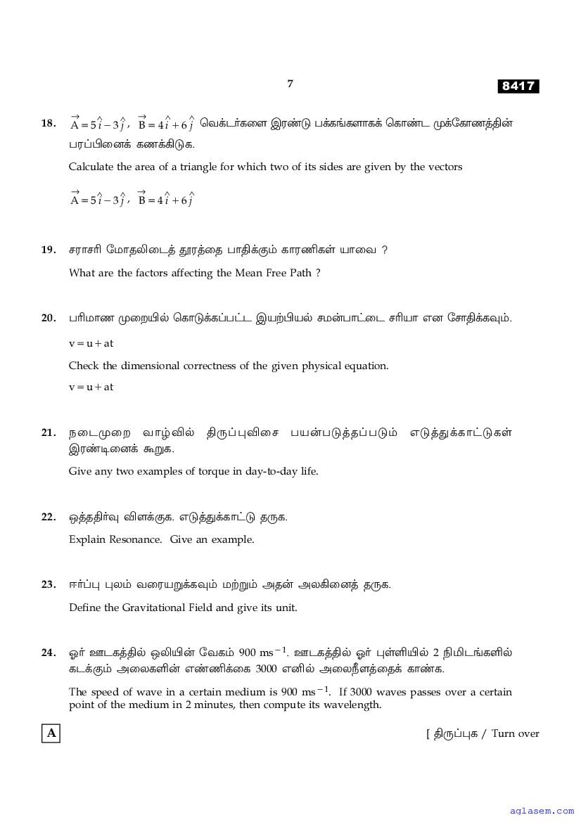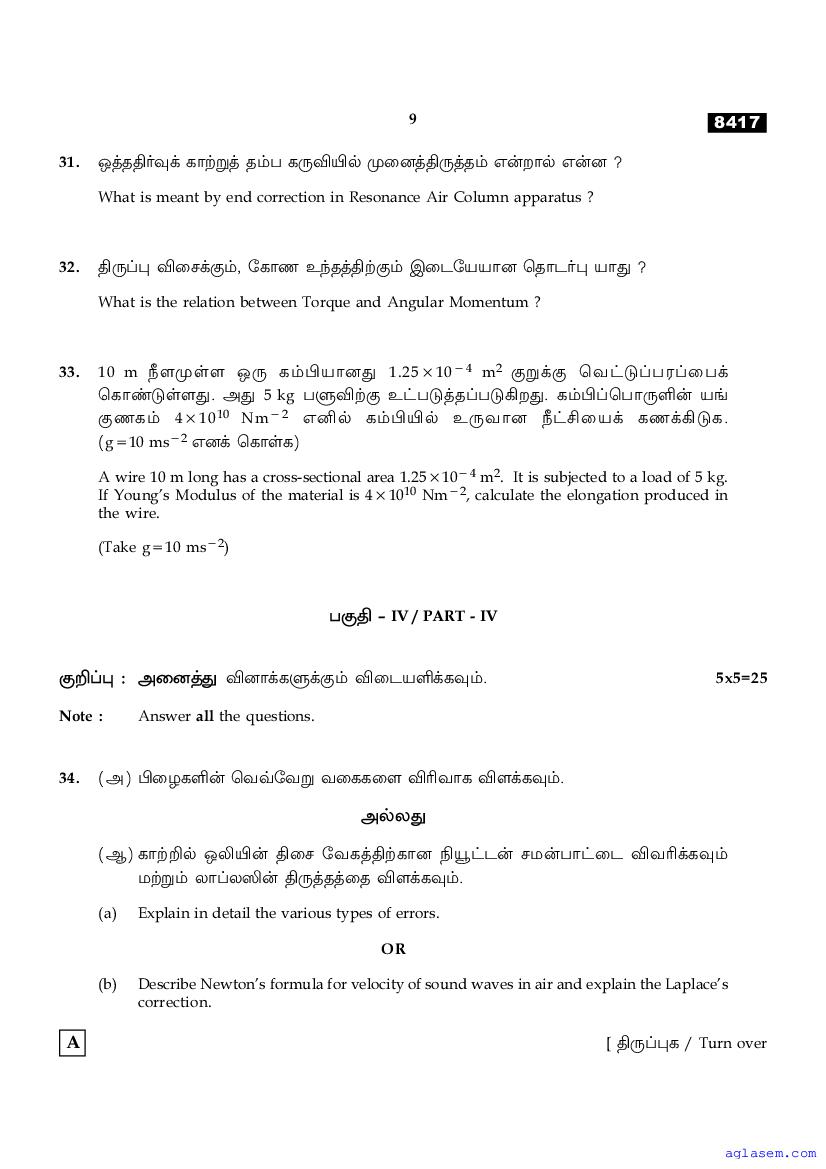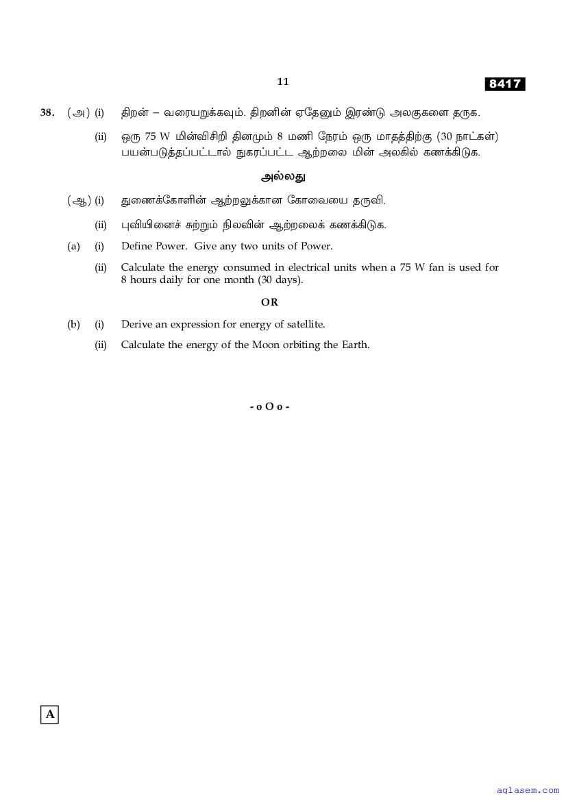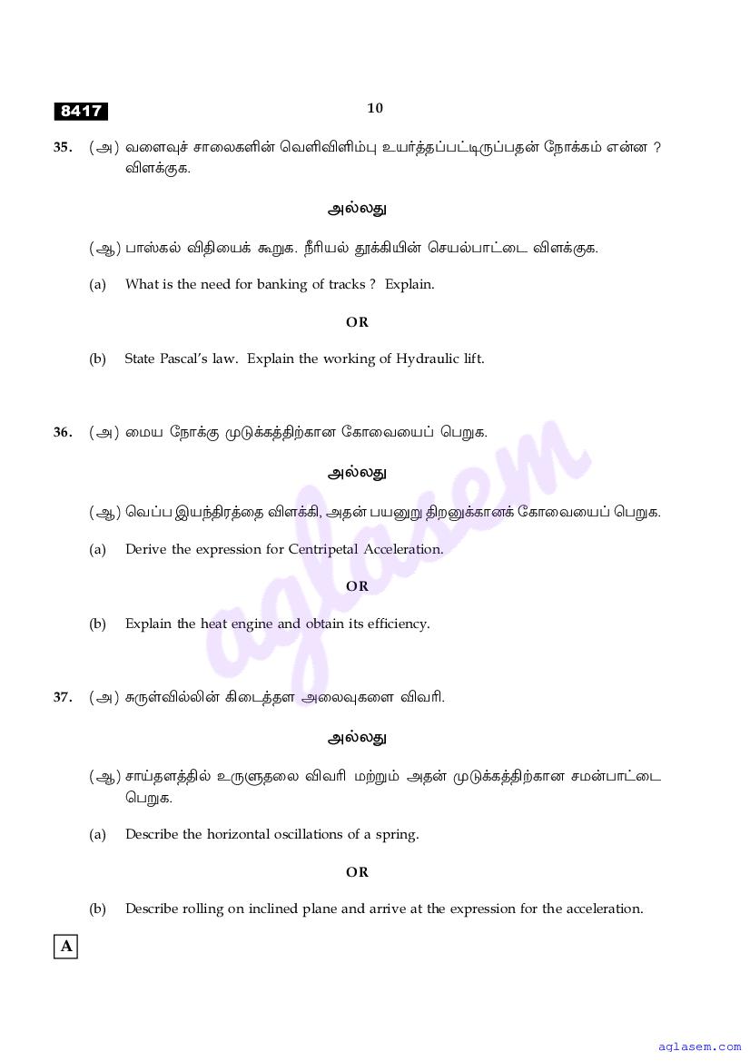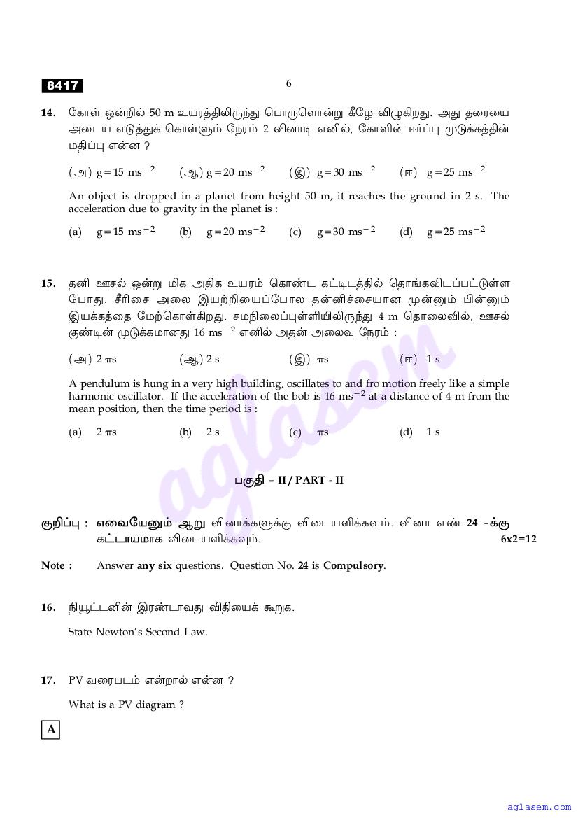 | Study Material Here | Tamil Nadu Board Model Question Paper for Class 11 Physics |