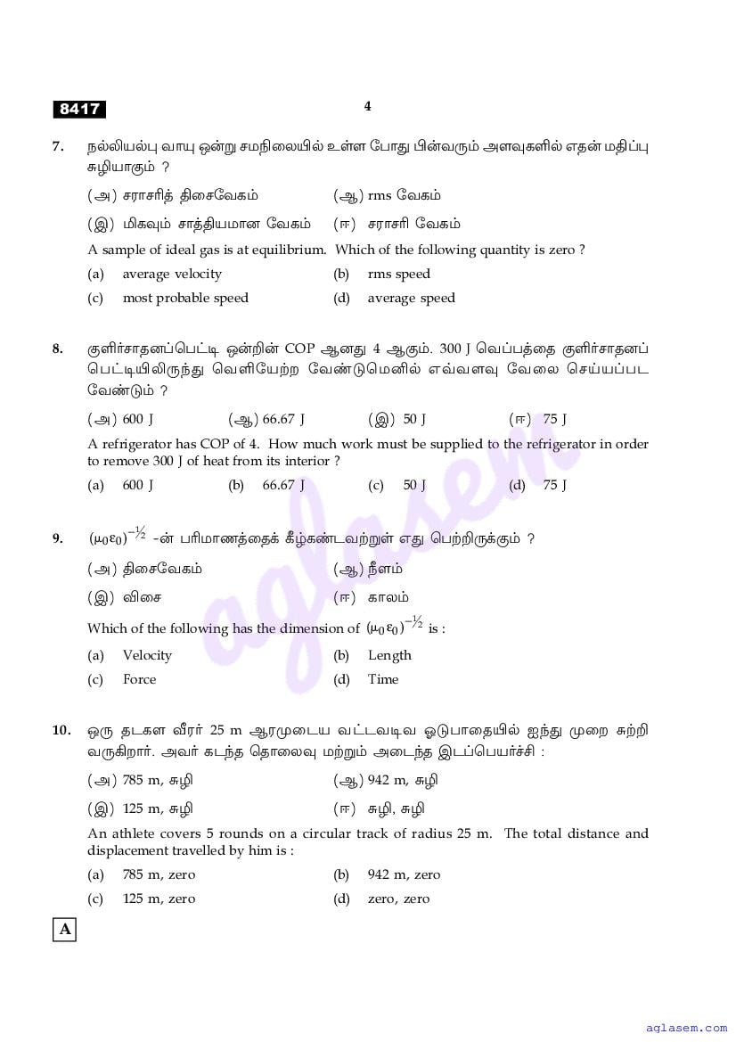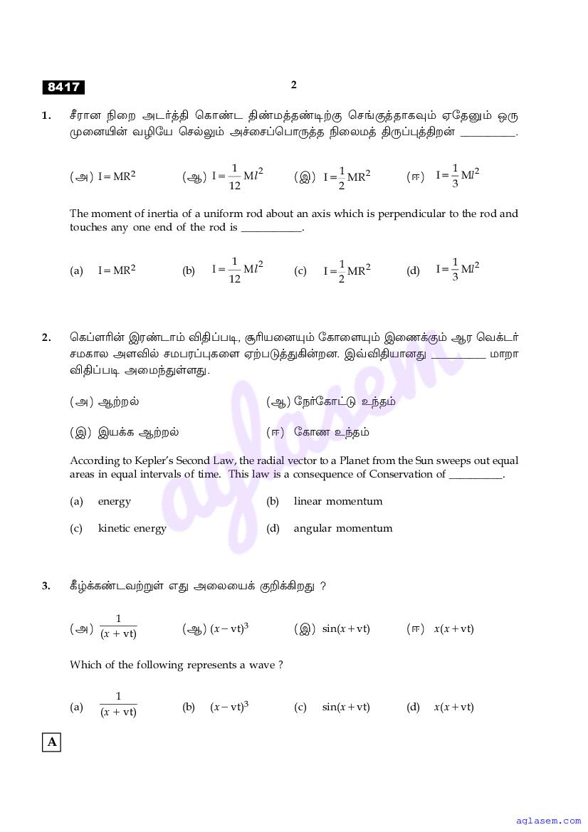The Tamil Nadu Board Model Paper for class 11 Physics is as follows.