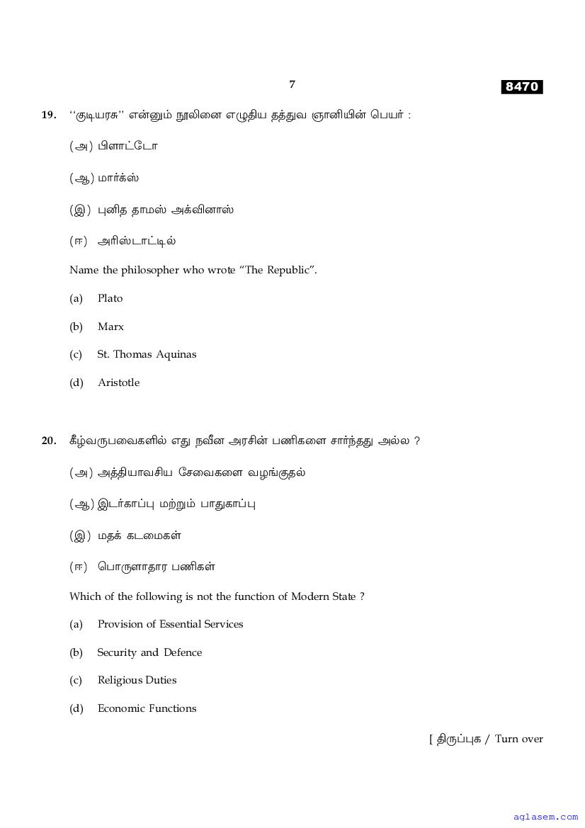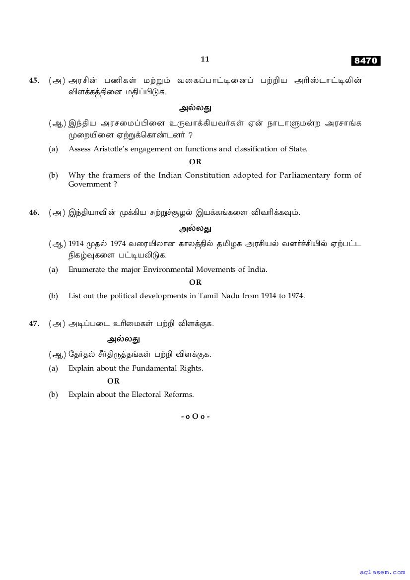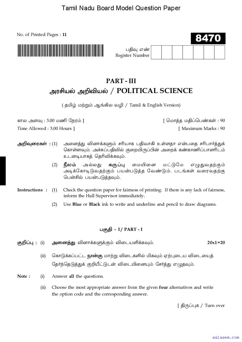 | Study Material Here | Tamil Nadu Board Model Question Paper for Class 11 Political Science |