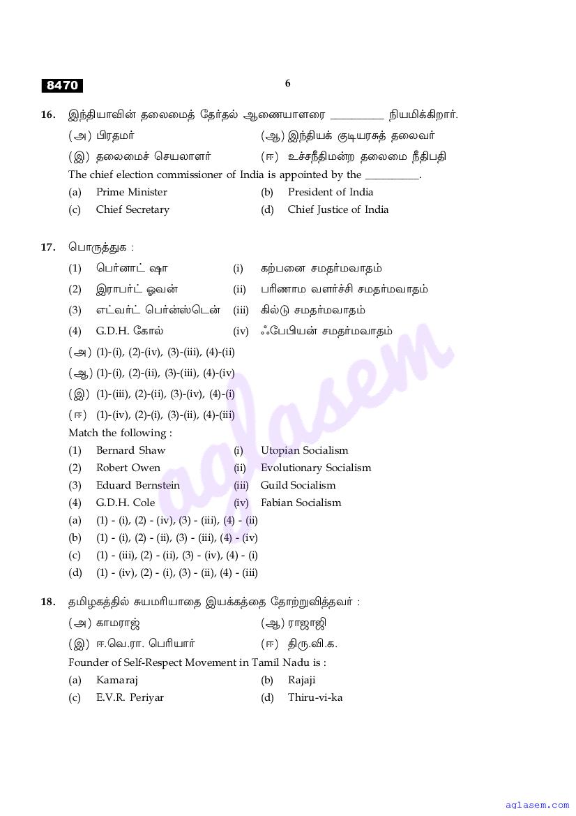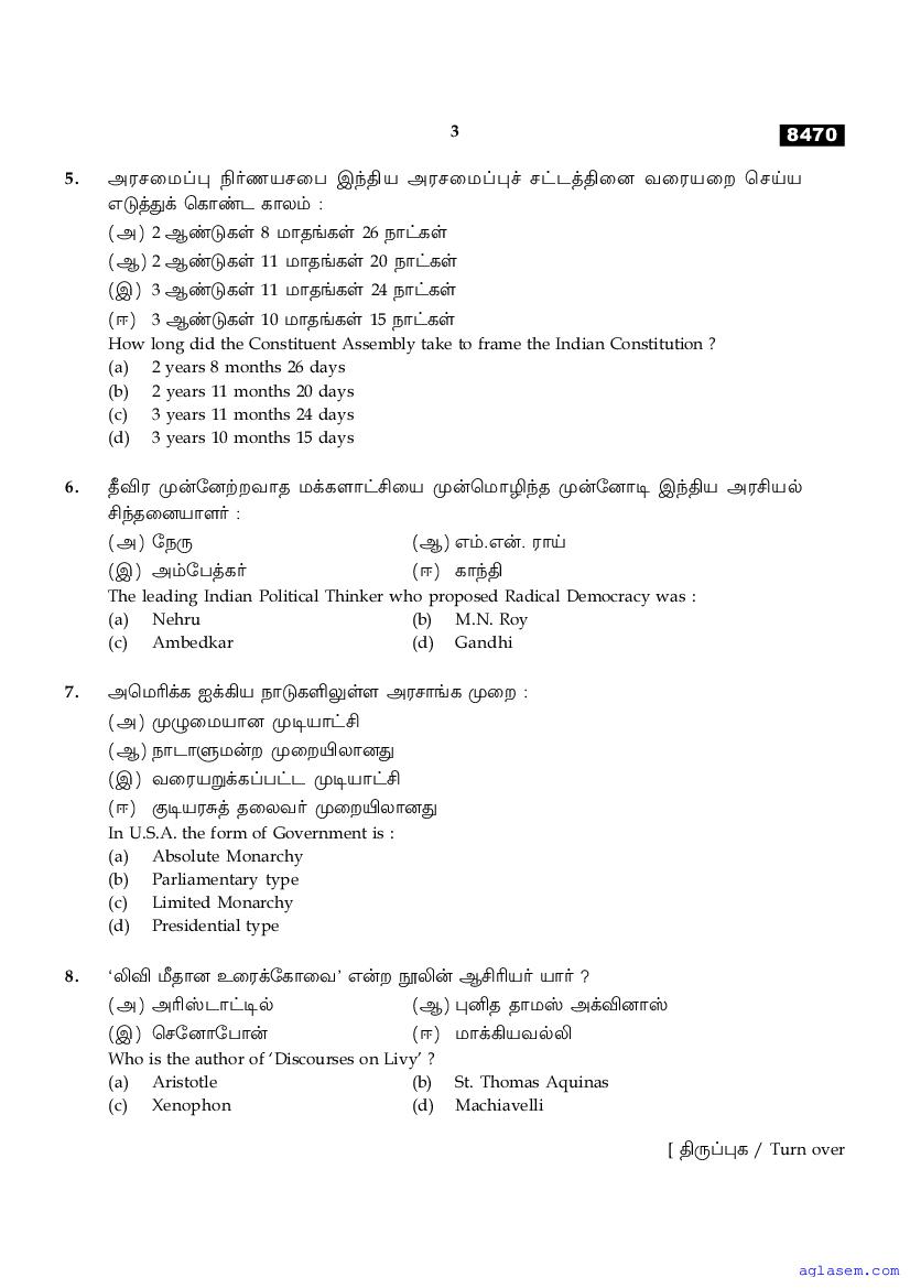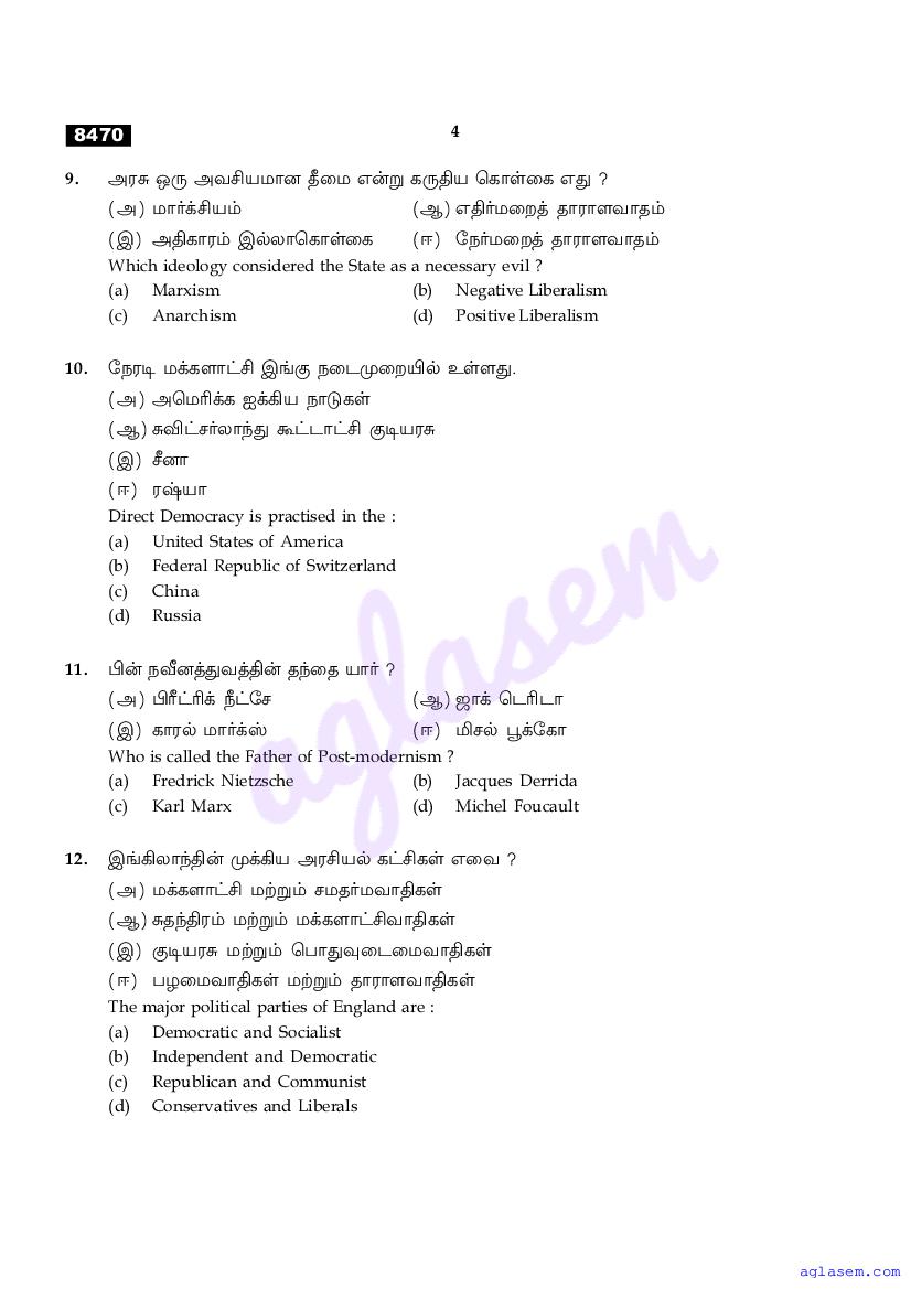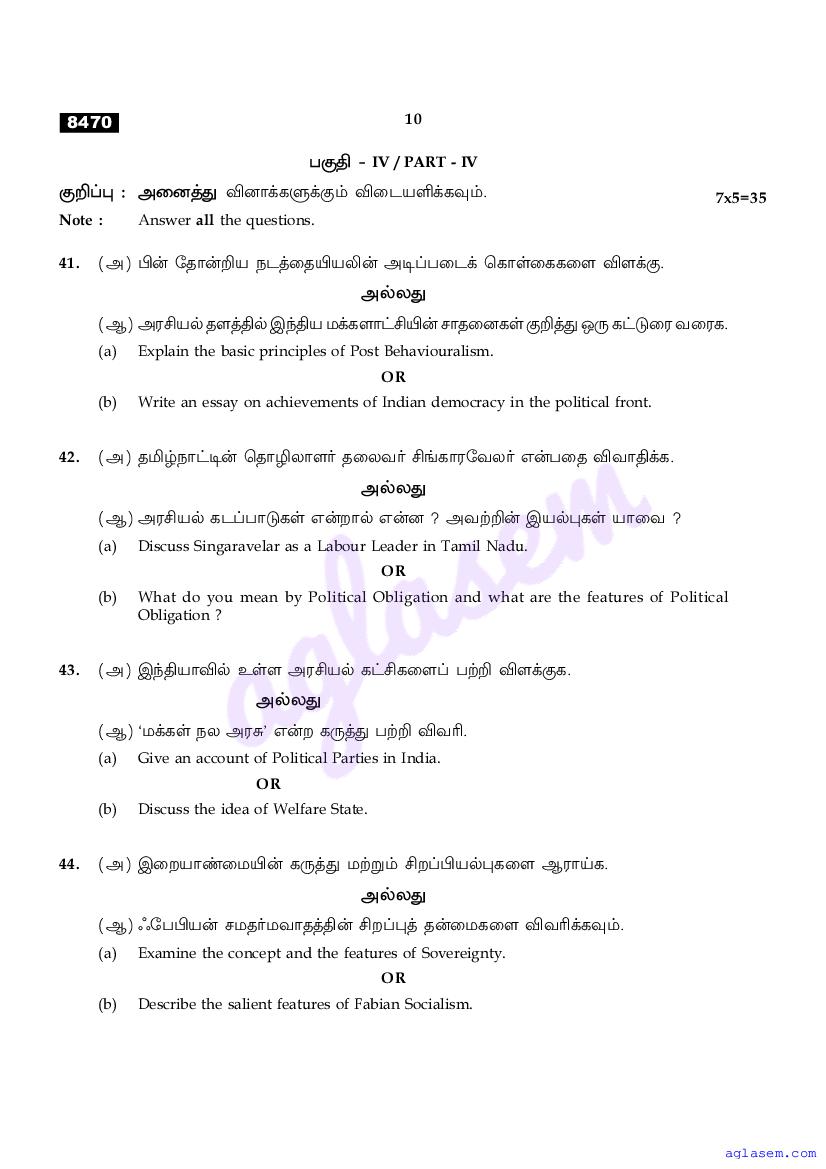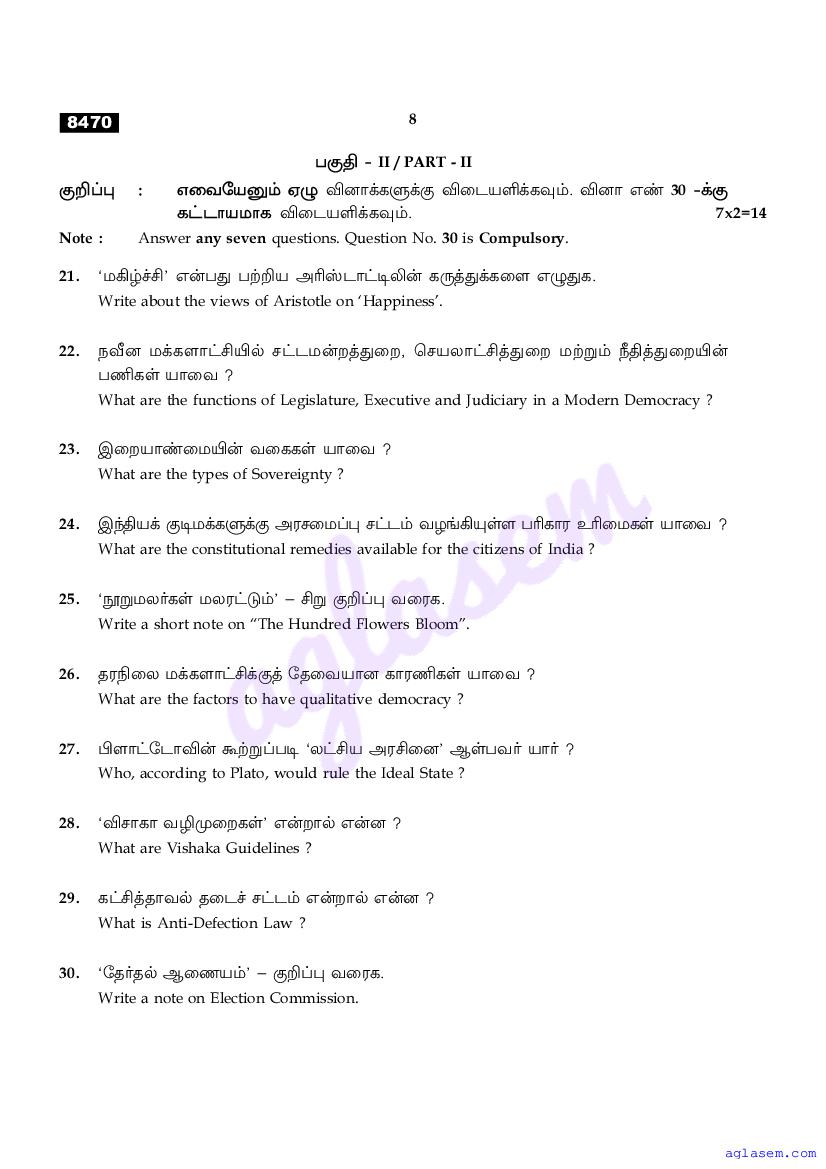 The Tamil Nadu Board Model Paper for class 11 Political Science is as follows.