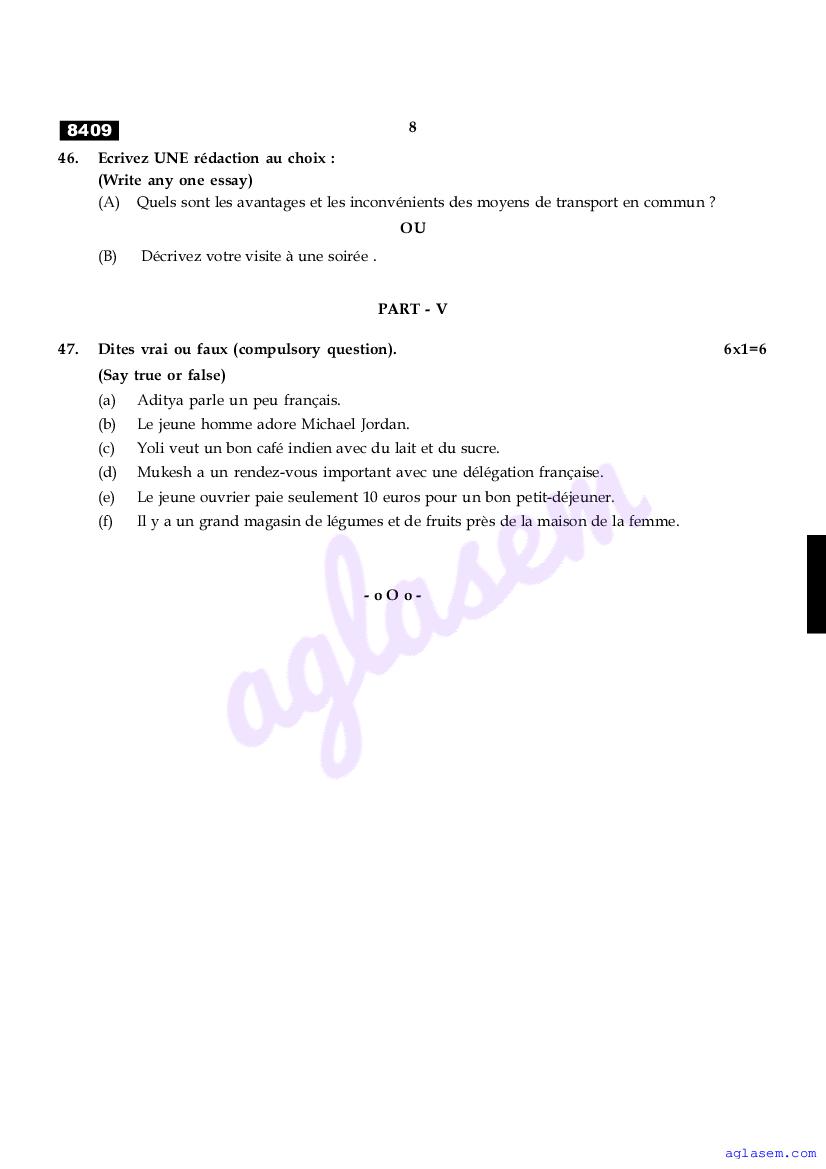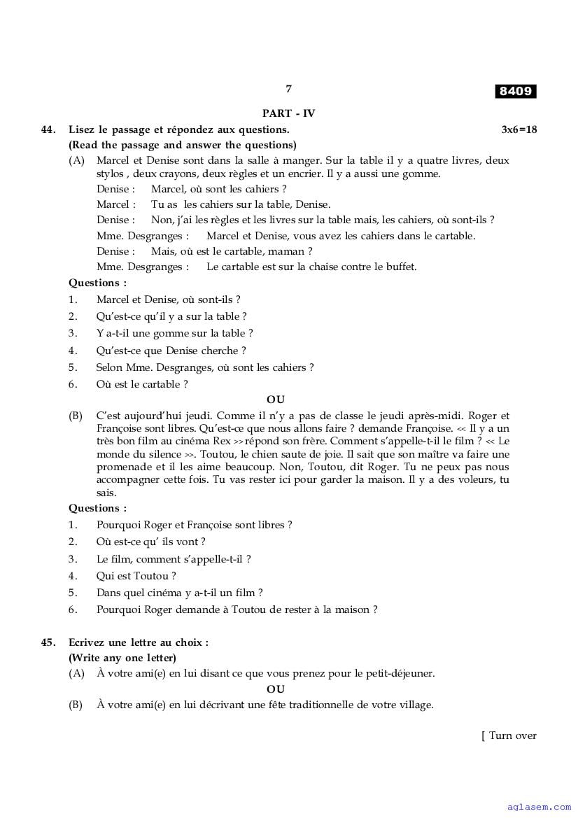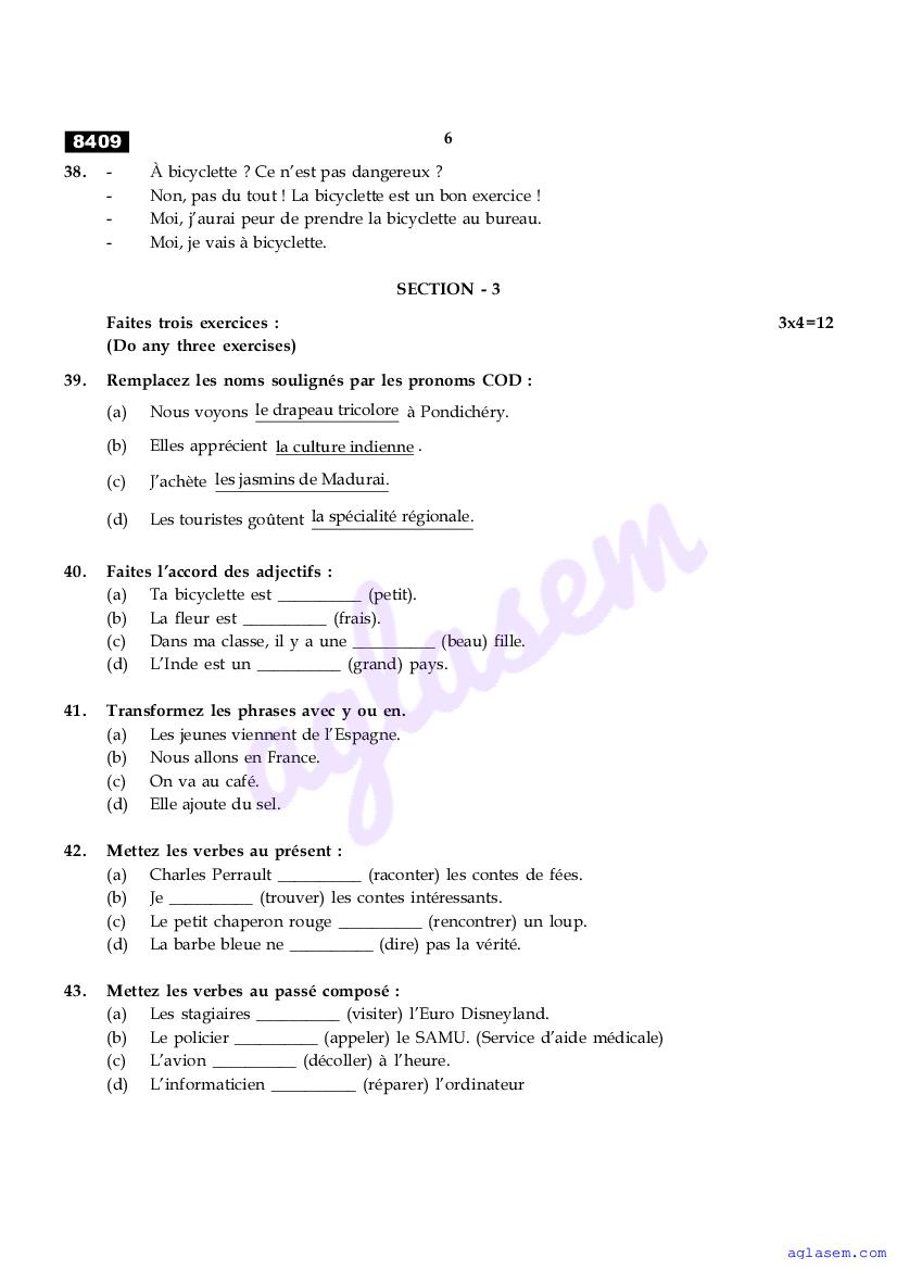 The Tamil Nadu Board Model Paper for class 11 French is as follows.