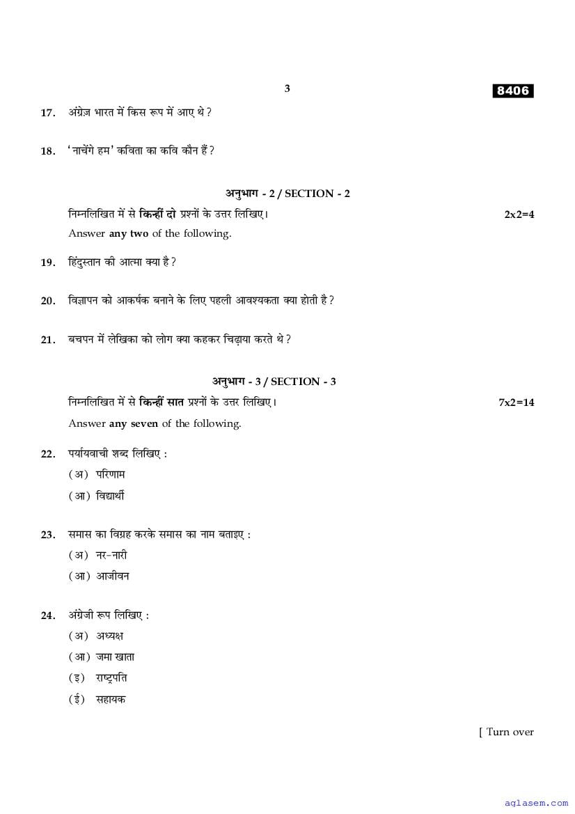 | Study Material Here | Tamil Nadu Board Model Question Paper for Class 11 Hindi |