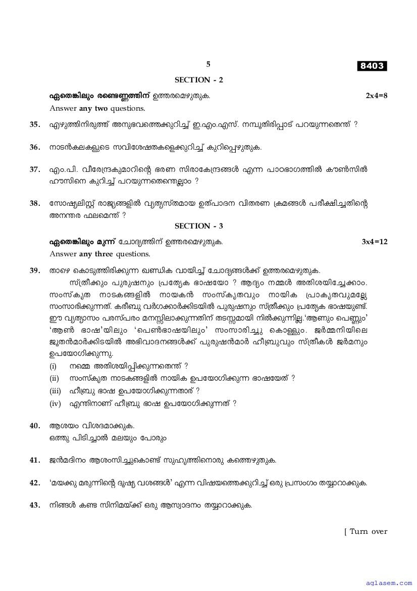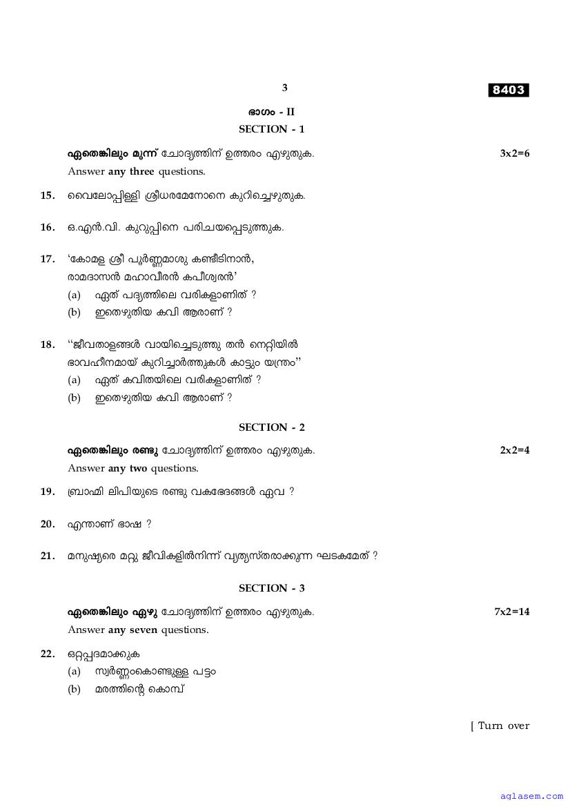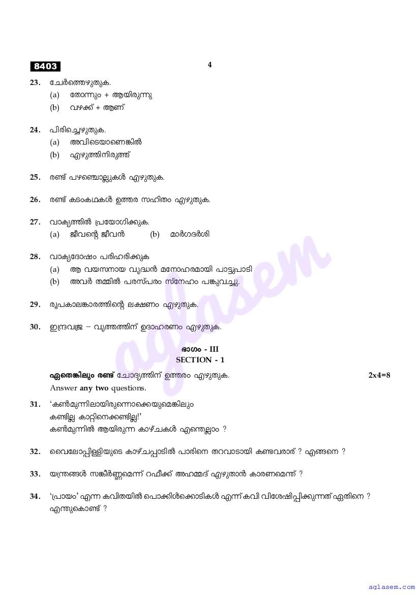 | Subject | Malayalam |