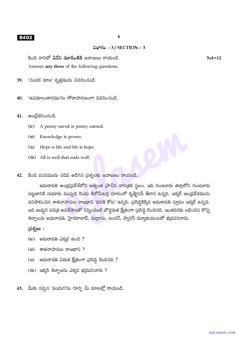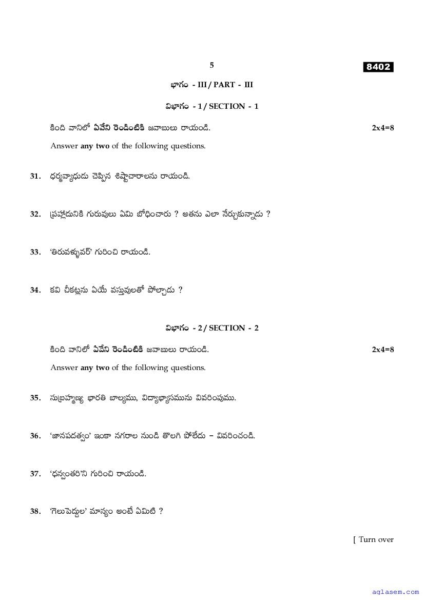 The Tamil Nadu Board Model Paper for class 11 Telugu is as follows.
