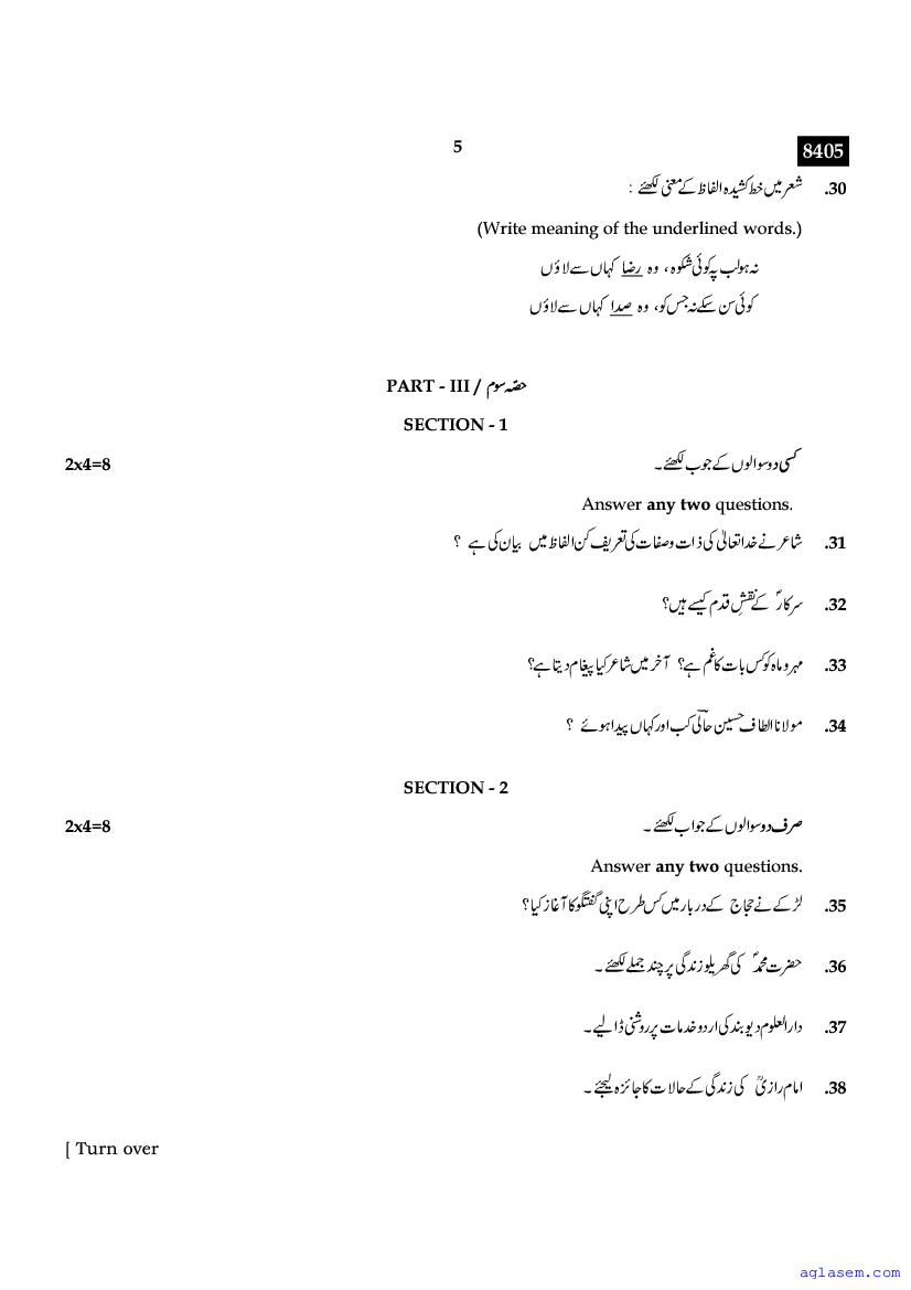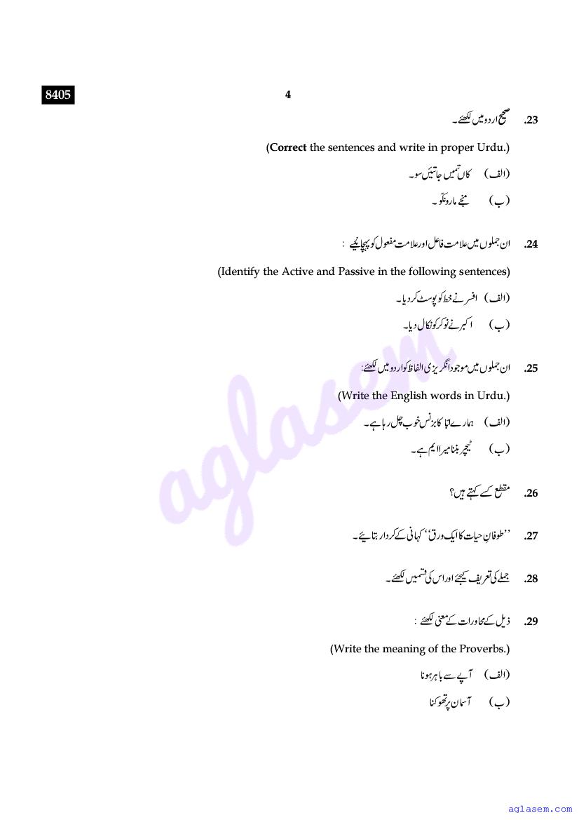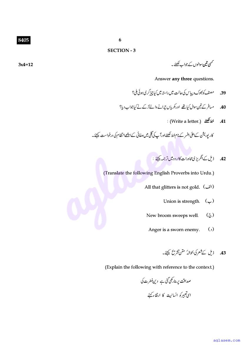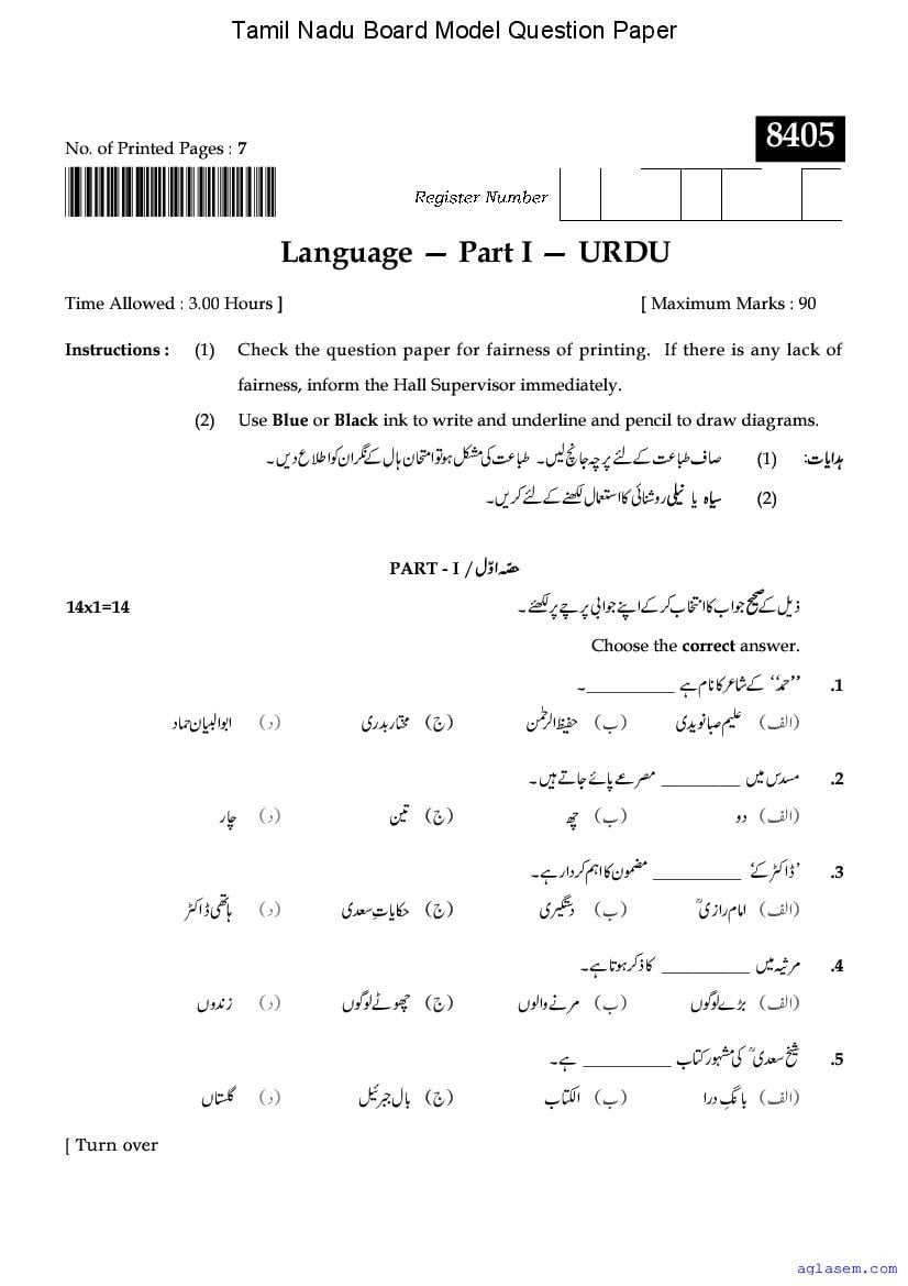 | Study Material Here | Tamil Nadu Board Model Question Paper for Class 11 Urdu |