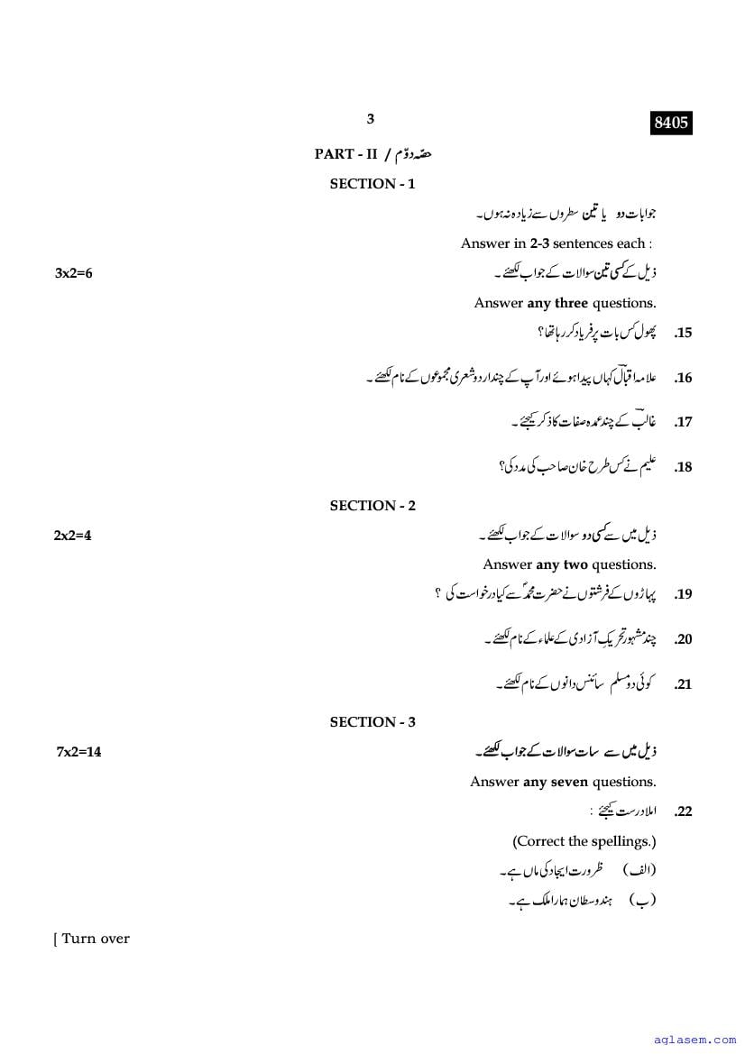 The Tamil Nadu Board Model Paper for class 11 Urdu is as follows.