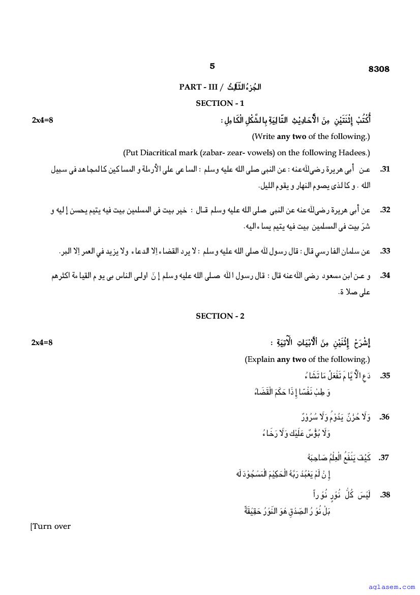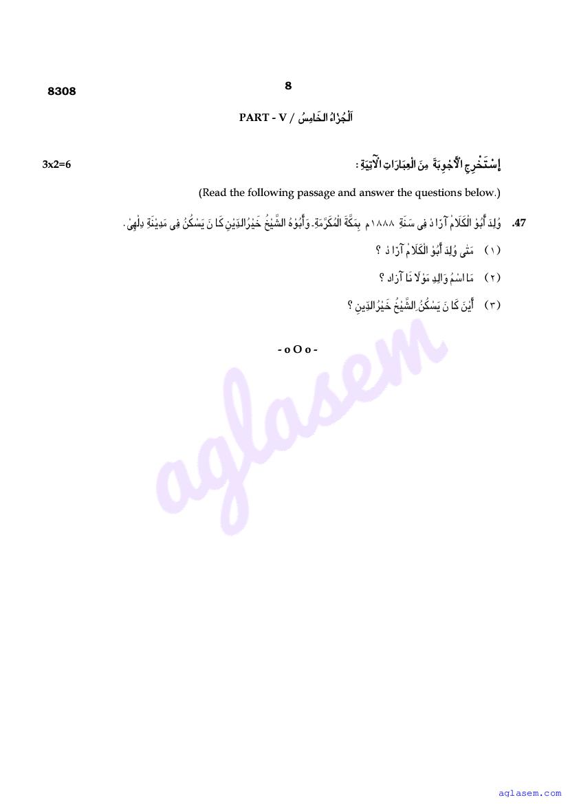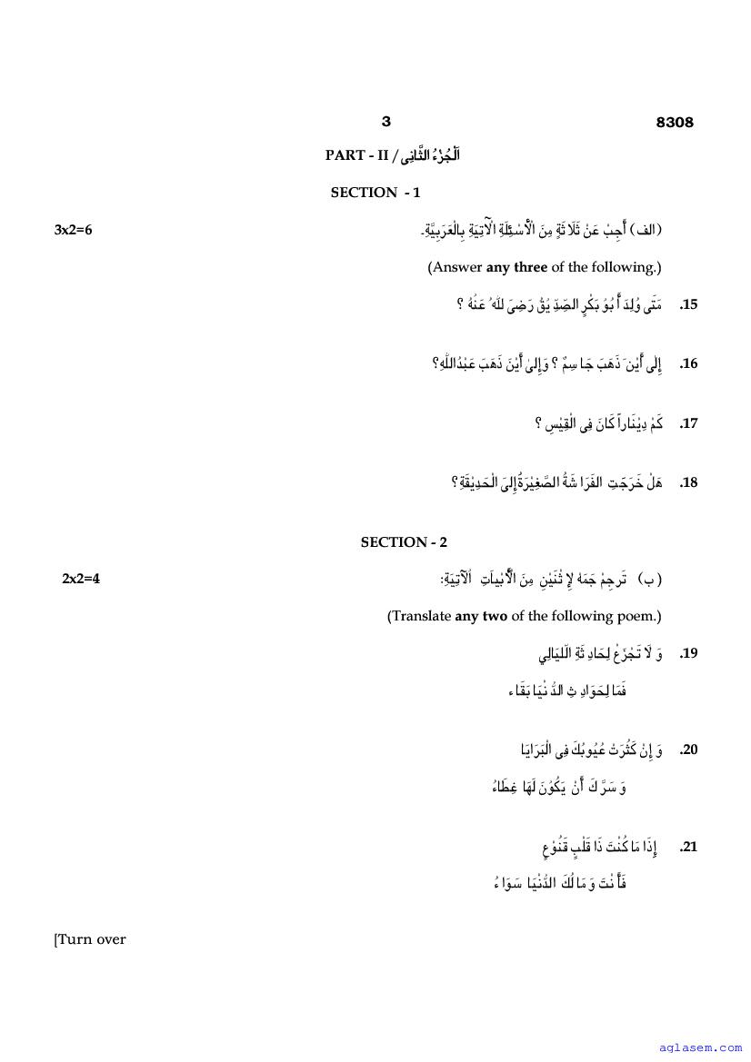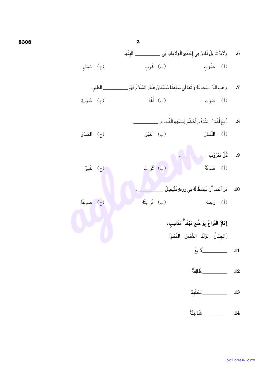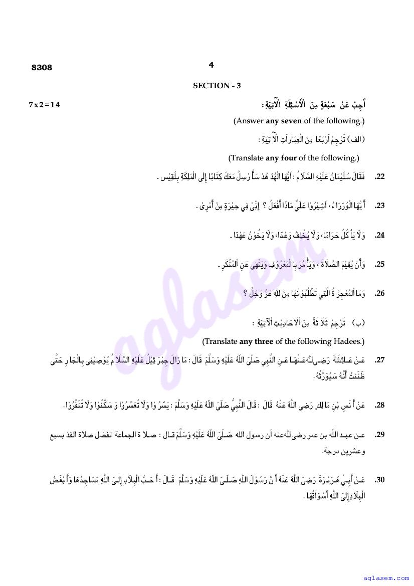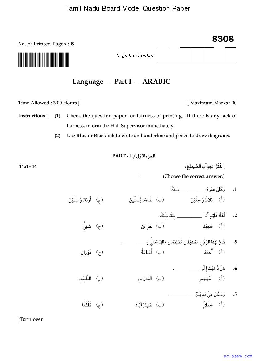 | Study Material Here | Tamil Nadu Board Model Question Paper for Class 12 Arabic |