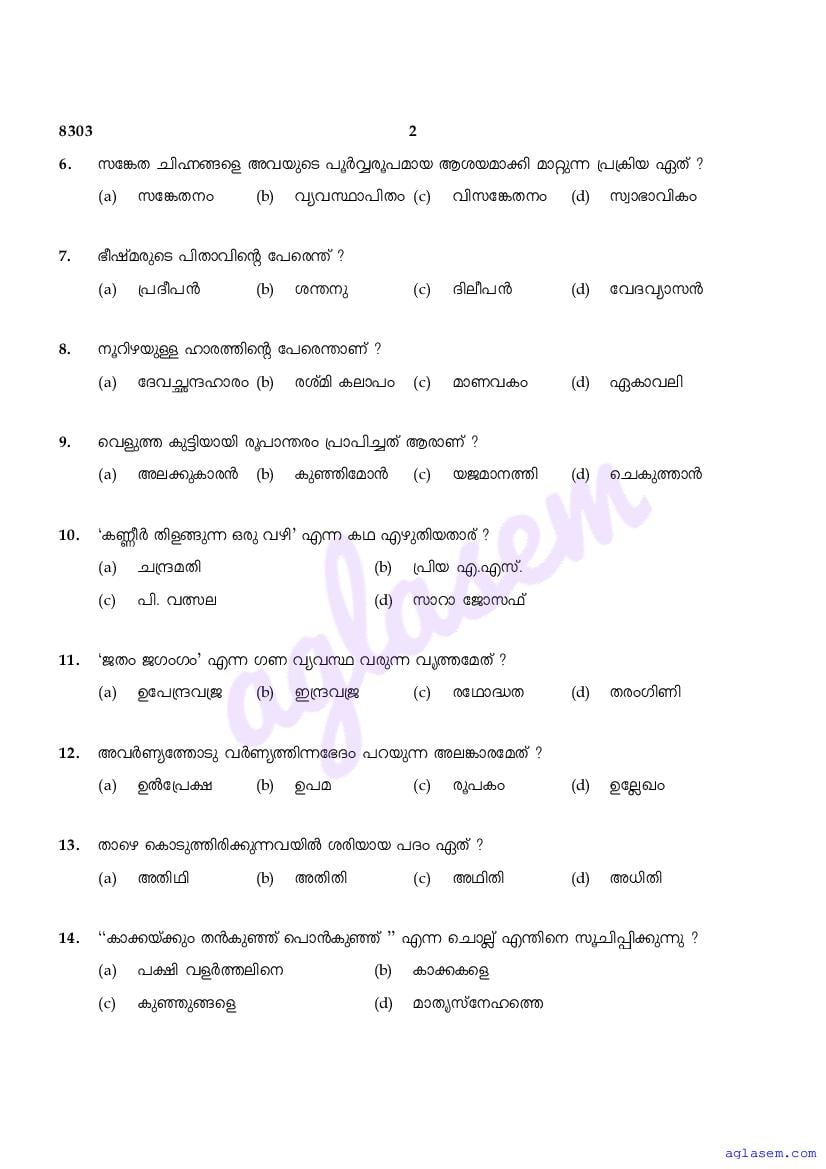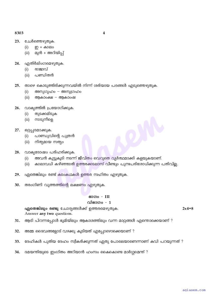 The Tamil Nadu Board Model Paper for class 12 Malayalam is as follows.