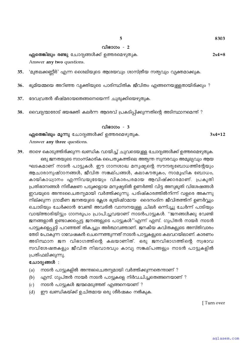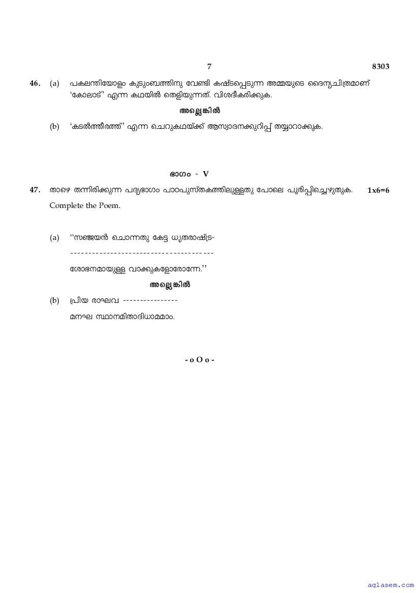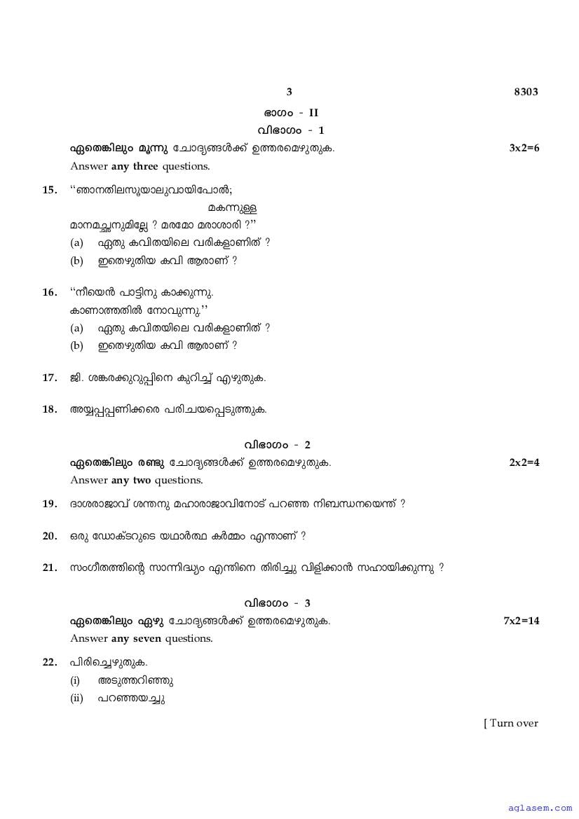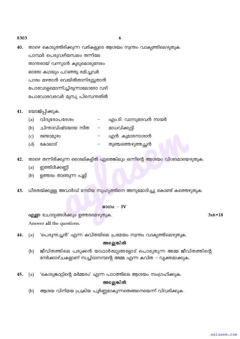 | Study Material Here | Tamil Nadu Board Model Question Paper for Class 12 Malayalam |