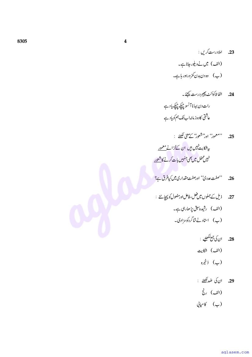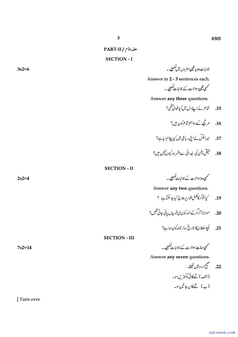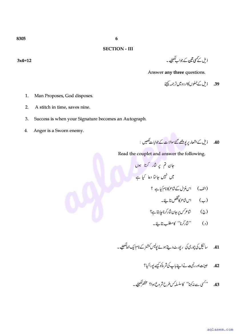 | Study Material Here | Tamil Nadu Board Model Question Paper for Class 12 Urdu |