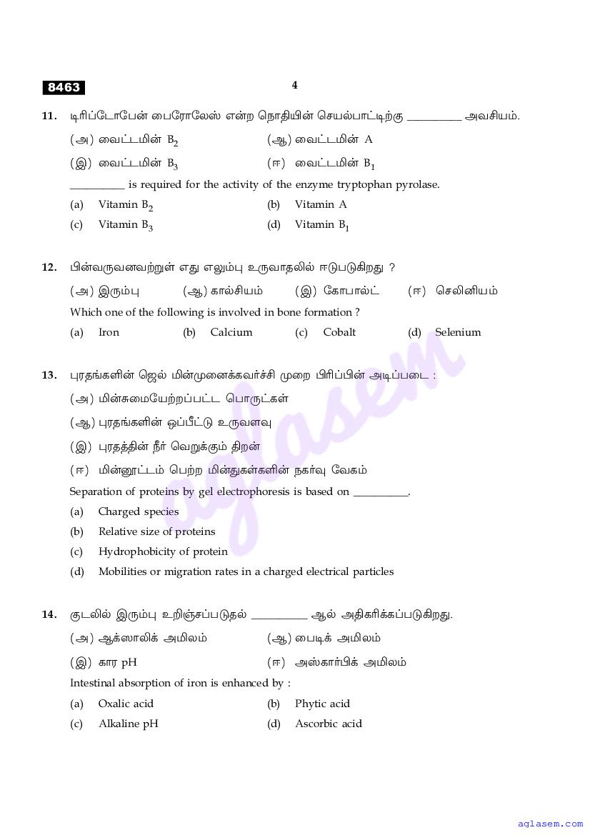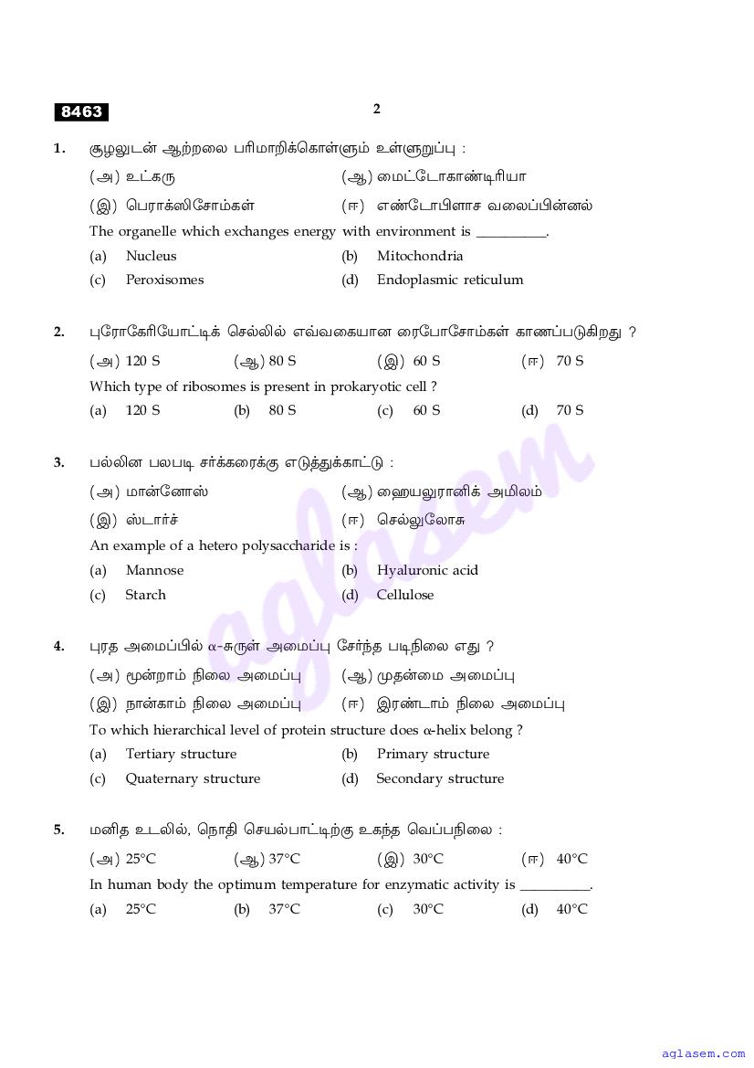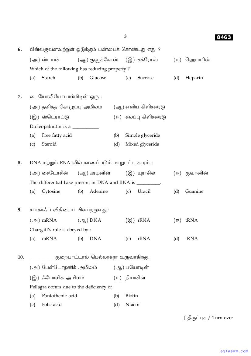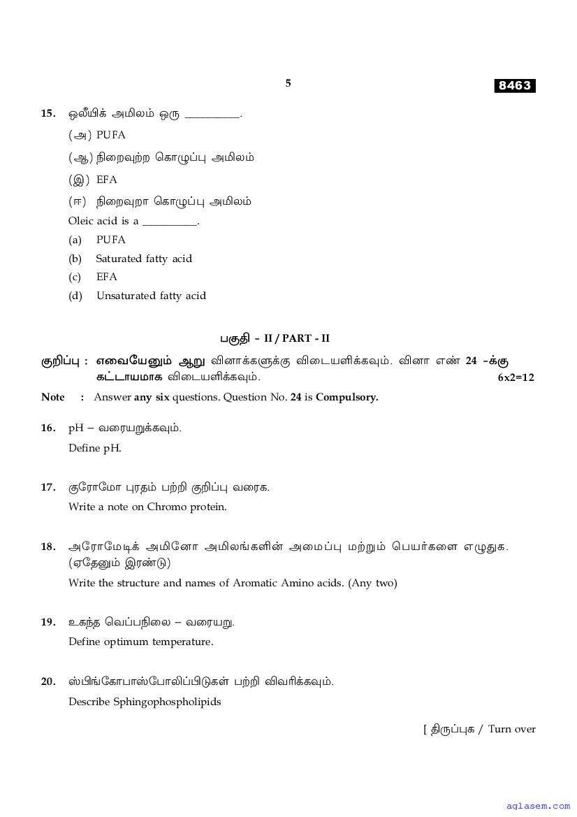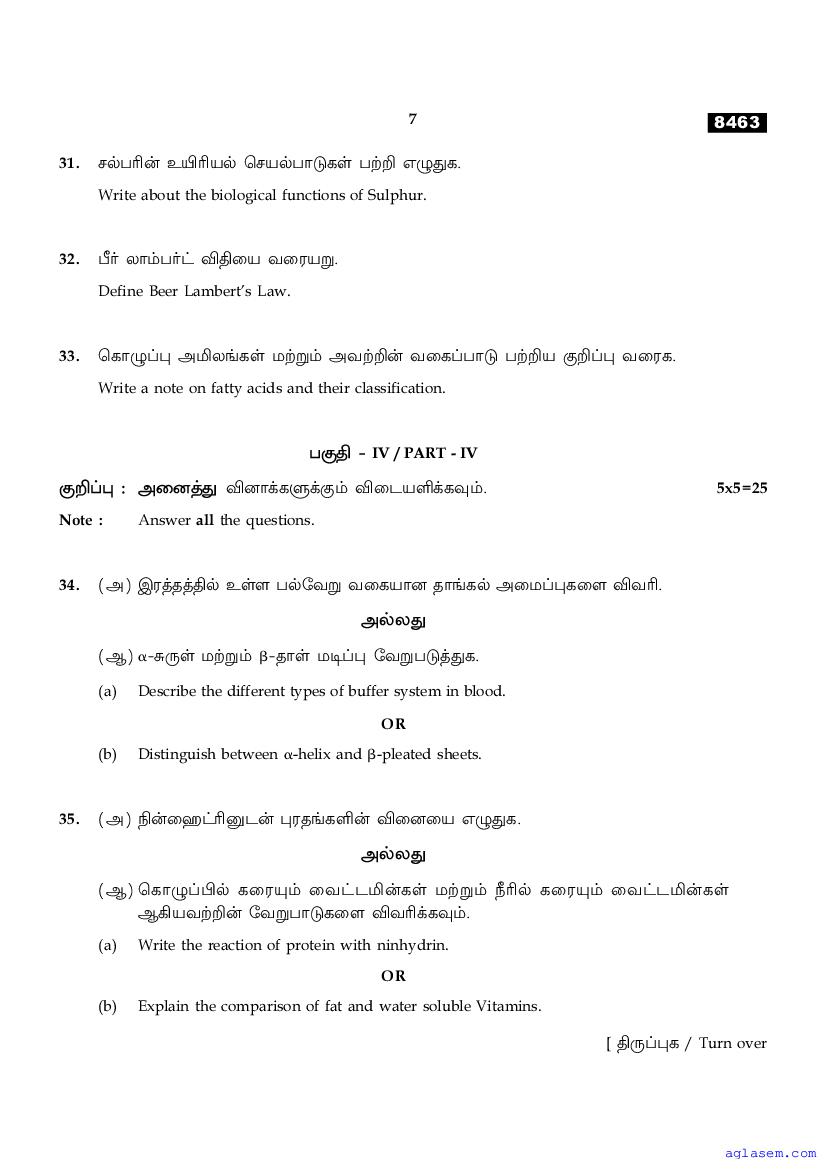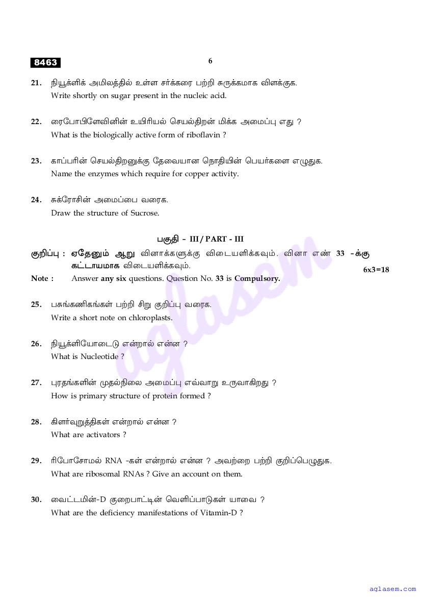 The Tamil Nadu Board Model Paper for class 11 Biochemistry is as follows.