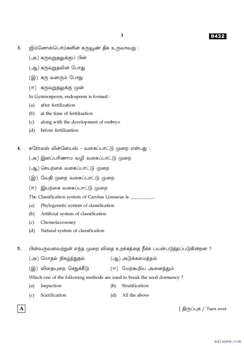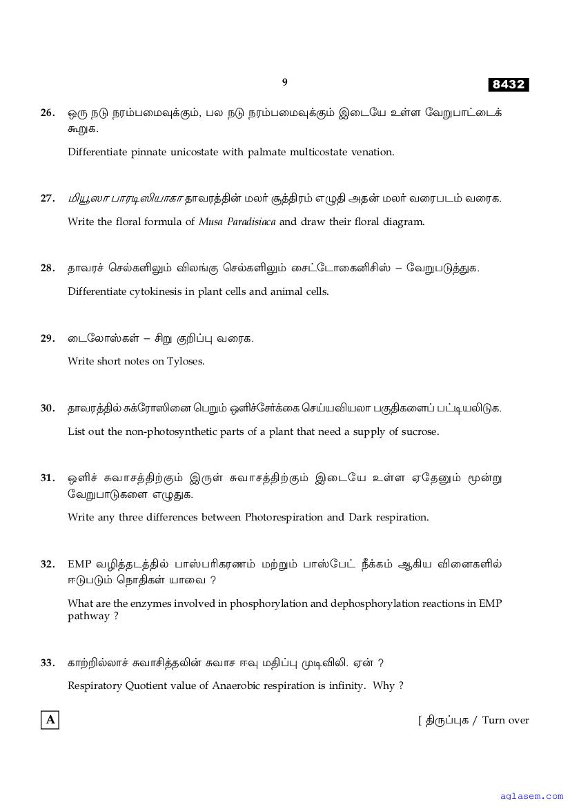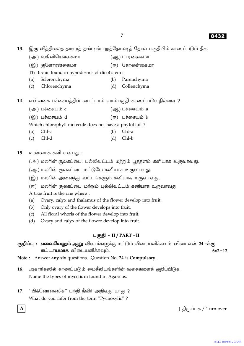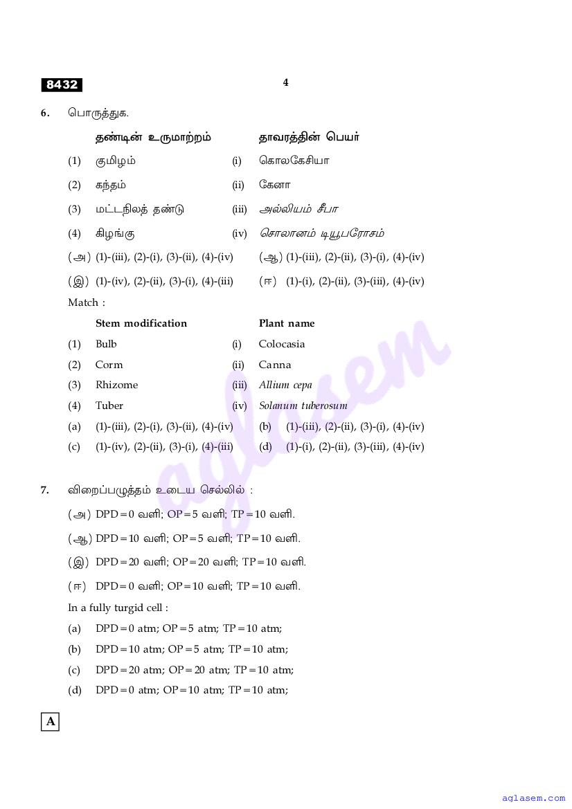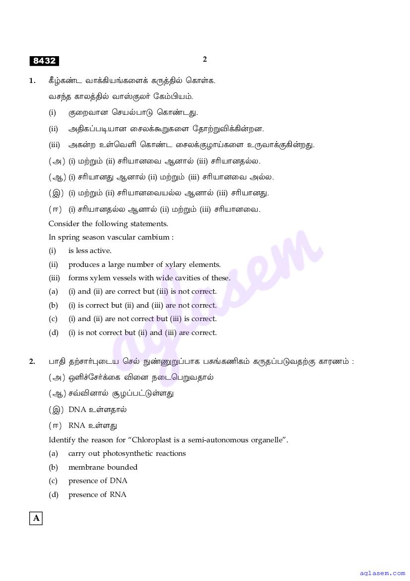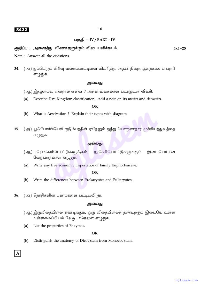 | Study Material Here | Tamil Nadu Board Model Question Paper for Class 11 Botany |