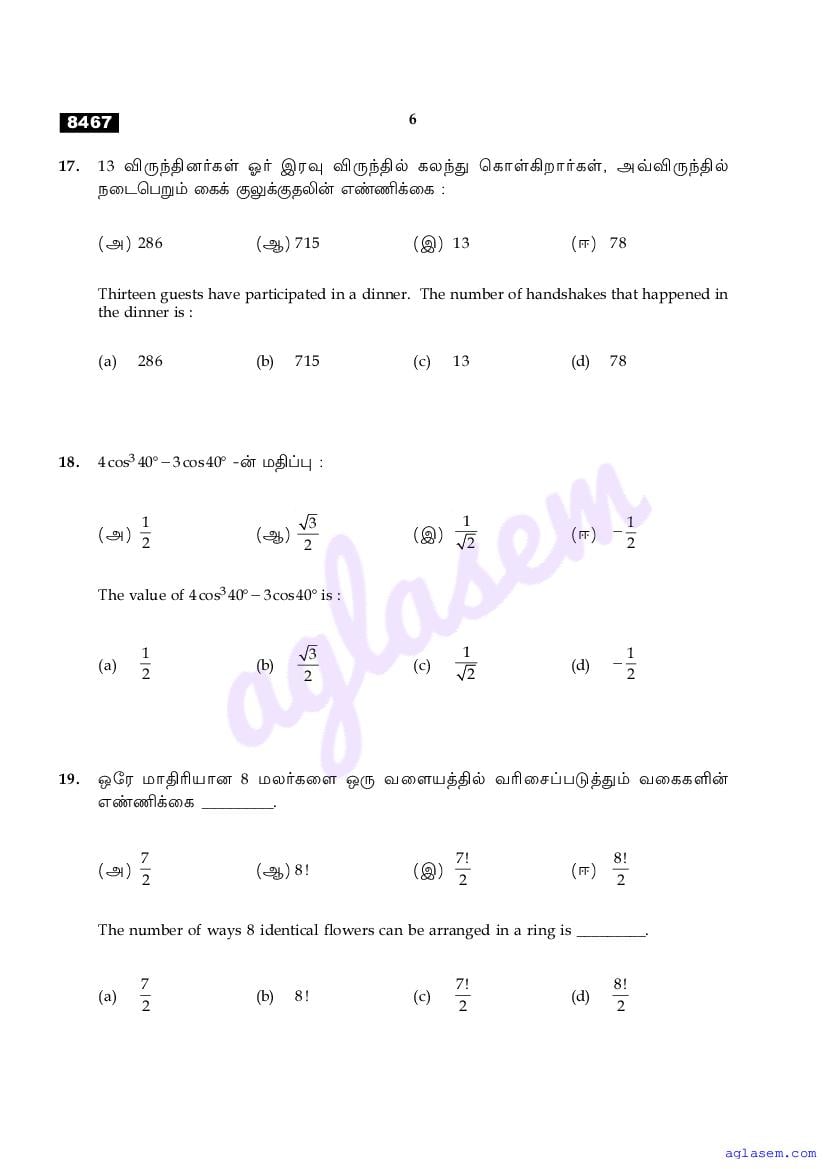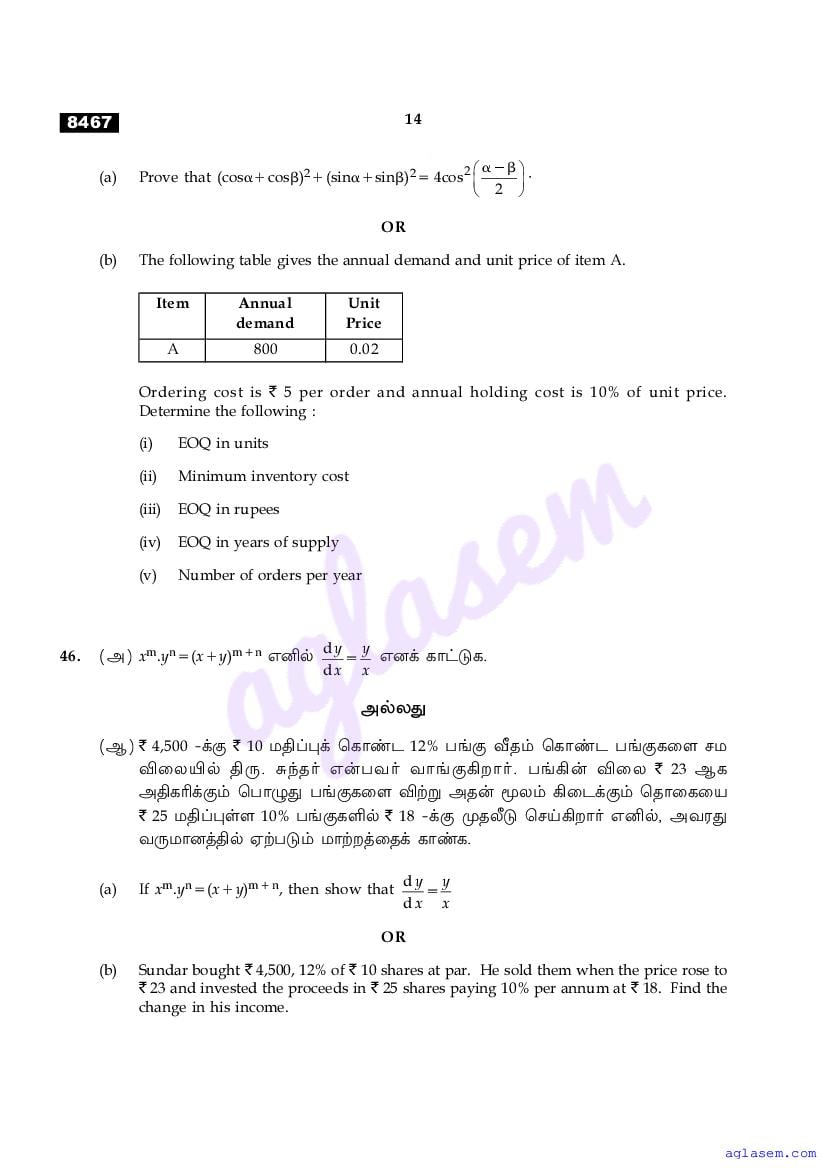 | More Sample Papers for This Class | Tamil Nadu Board Model Question Paper for Class 11 |