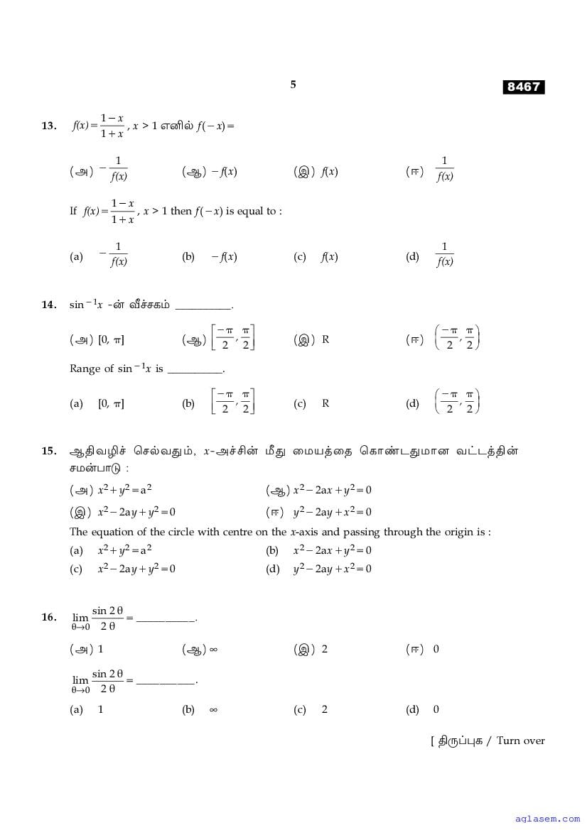 | More Sample Papers for This Board | Tamil Nadu Board Model Question Papers |