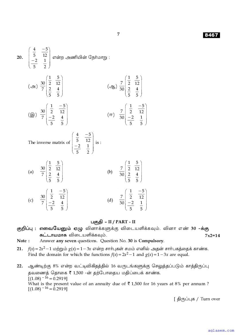 | Study Material Here | Tamil Nadu Board Model Question Paper for Class 11 Business Maths |