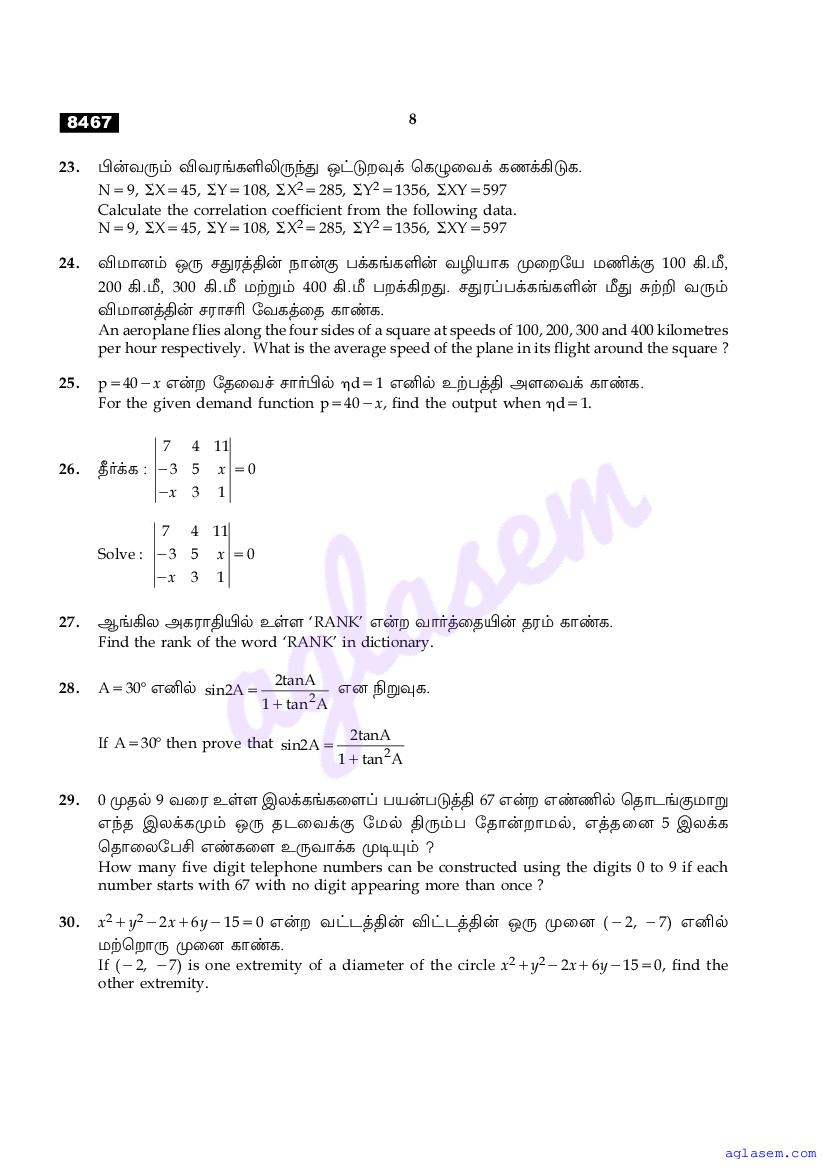 தமிழ்நாடு போர்டு வகுப்பு 11 Business Maths மாதிரி வினாத்தாள் 2026 உங்கள் 11 ஆம் வகுப்பு போர்டு தேர்வுகளுக்குத் தயாராவதற்கு உதவும் வகையில் வெளியிடப்பட்டுள்ளது. நீங்கள் இப்போது HSC (+1) Business Maths மாதிரி பேப்பர் PDF ஐ இங்கிருந்து aglasem.com இல் பதிவிறக்கம் செய்யலாம். 11 ஆம் வகுப்பின் சமீபத்திய DGE TN பாடத்திட்டத்தின்படி மாதிரித் தாளில் மாதிரி கேள்விகள் உள்ளன Business Maths. எனவே நீங்கள் இந்த வினாத்தாளைத் தீர்த்தால், 11 ஆம் வகுப்பு Business Maths தேர்வில் 100% மதிப்பெண்கள் பெறுவதற்கான வாய்ப்புகளை மேம்படுத்துகிறது.