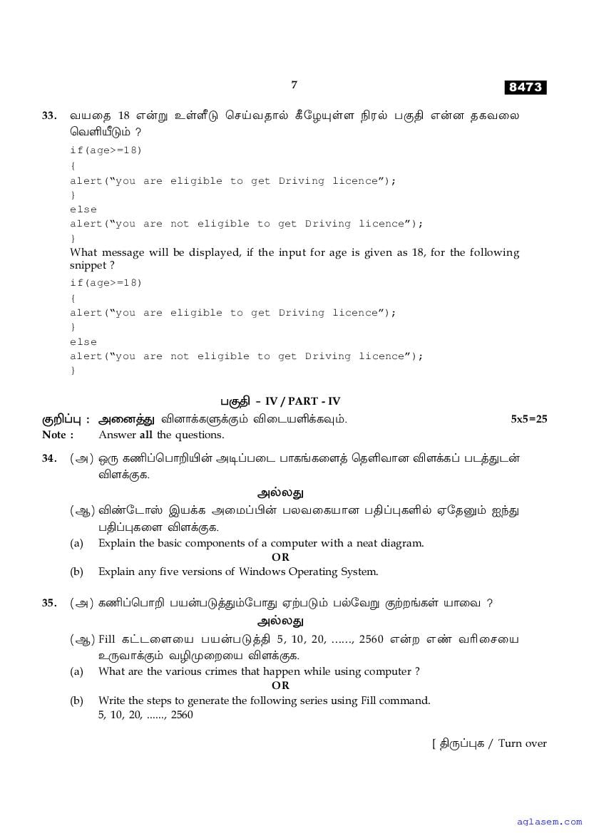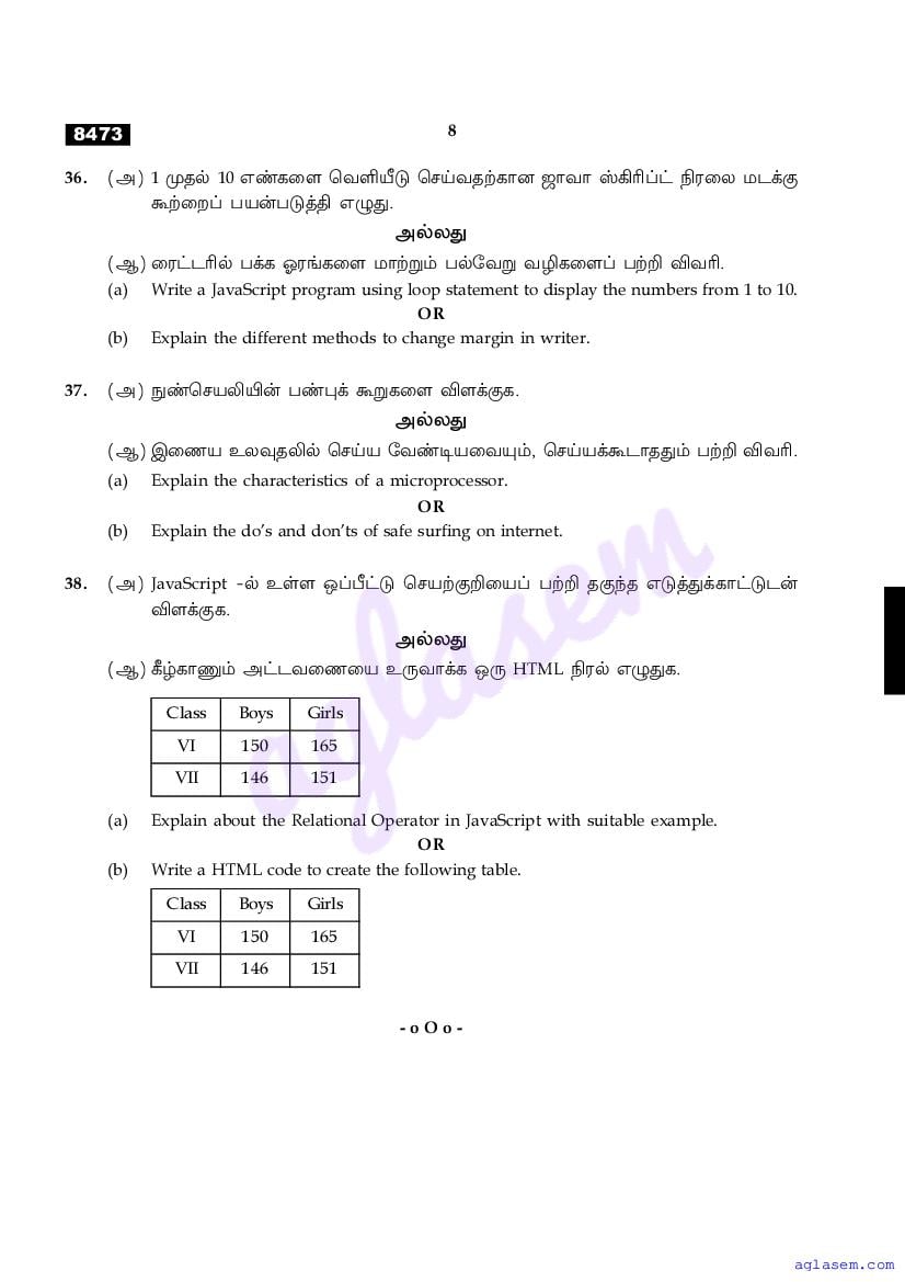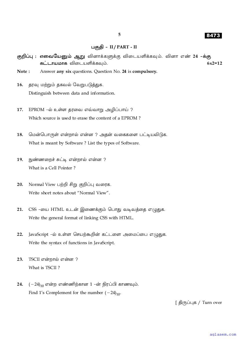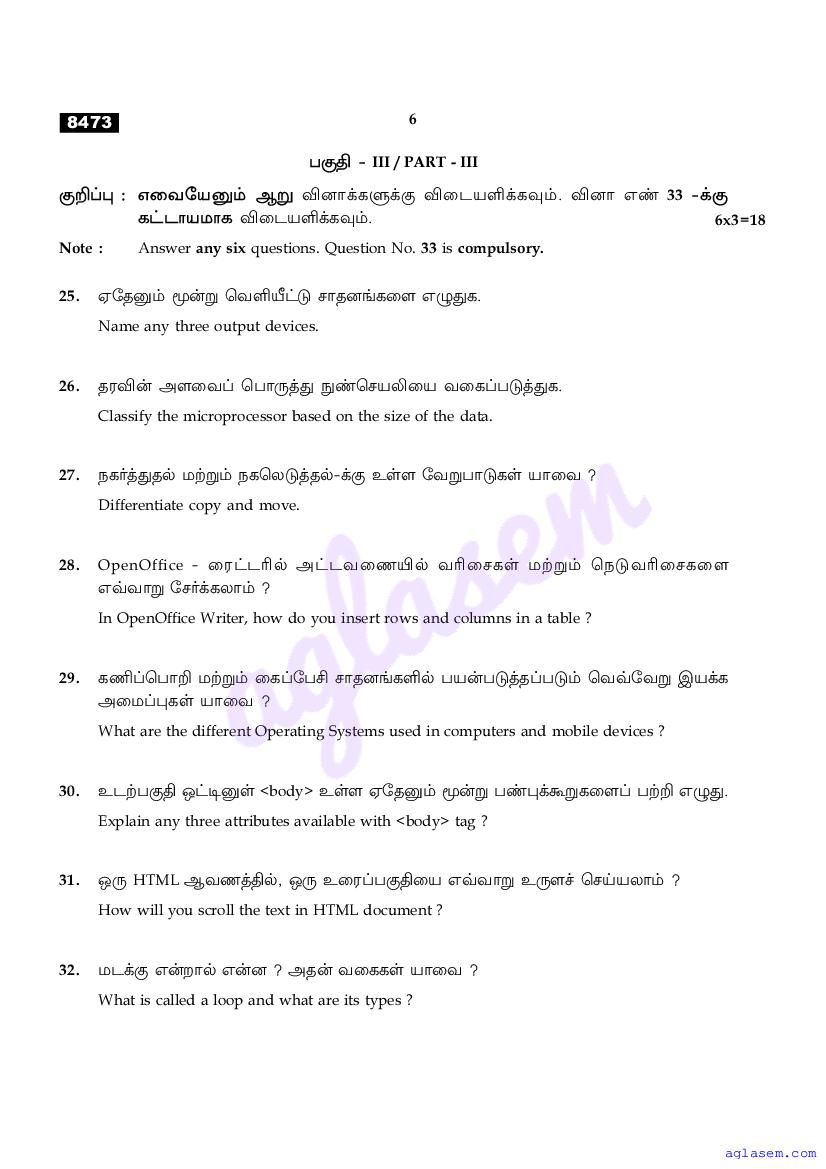 | Study Material Here | Tamil Nadu Board Model Question Paper for Class 11 Computer Application |