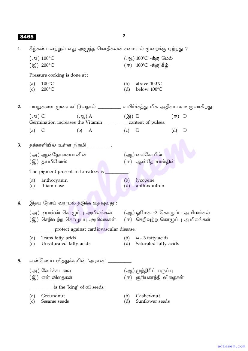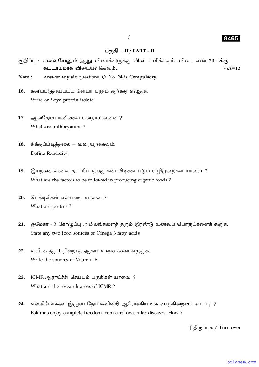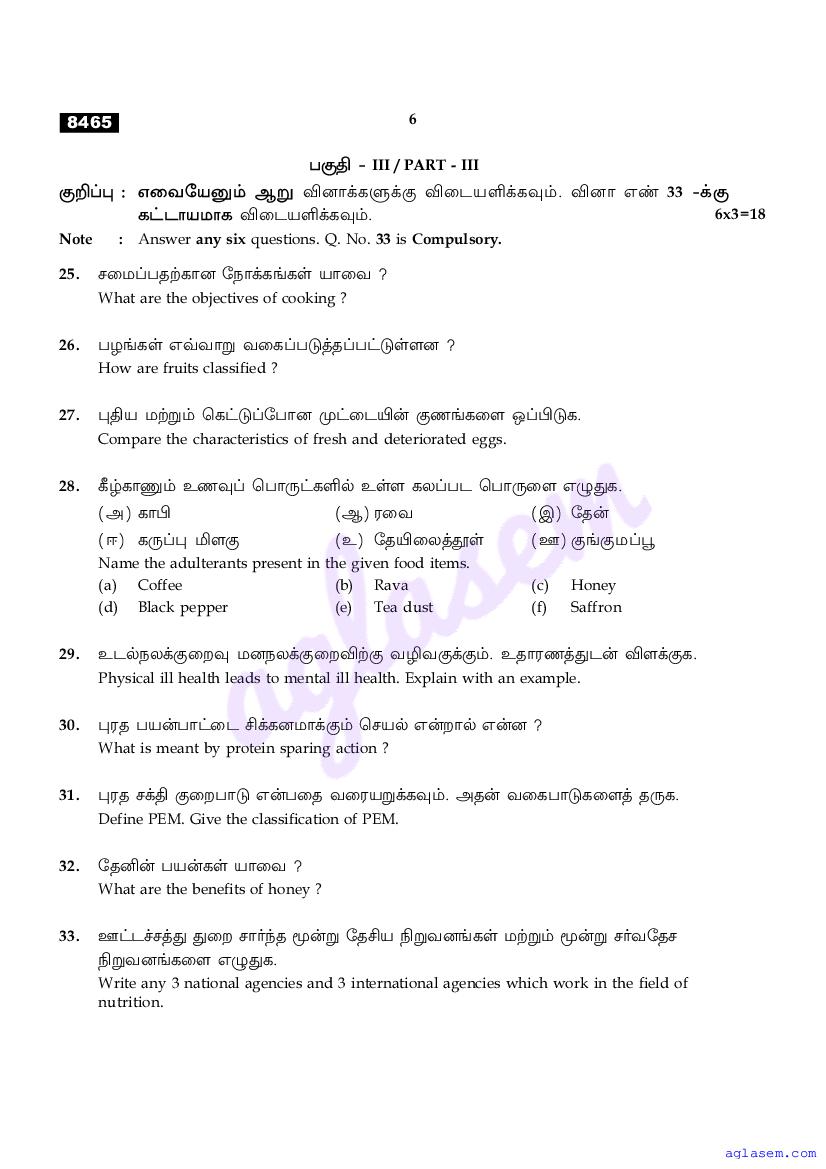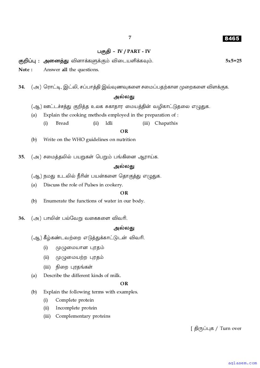 The Tamil Nadu Board Model Paper for class 11 Nutrition & Dietetics is as follows.