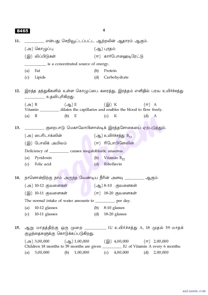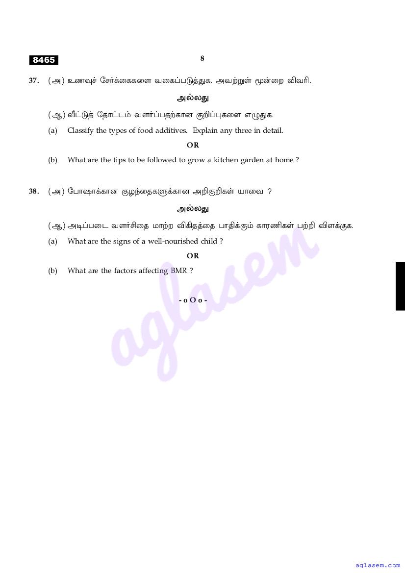 | Study Material Here | Tamil Nadu Board Model Question Paper for Class 11 Nutrition & Dietetics |