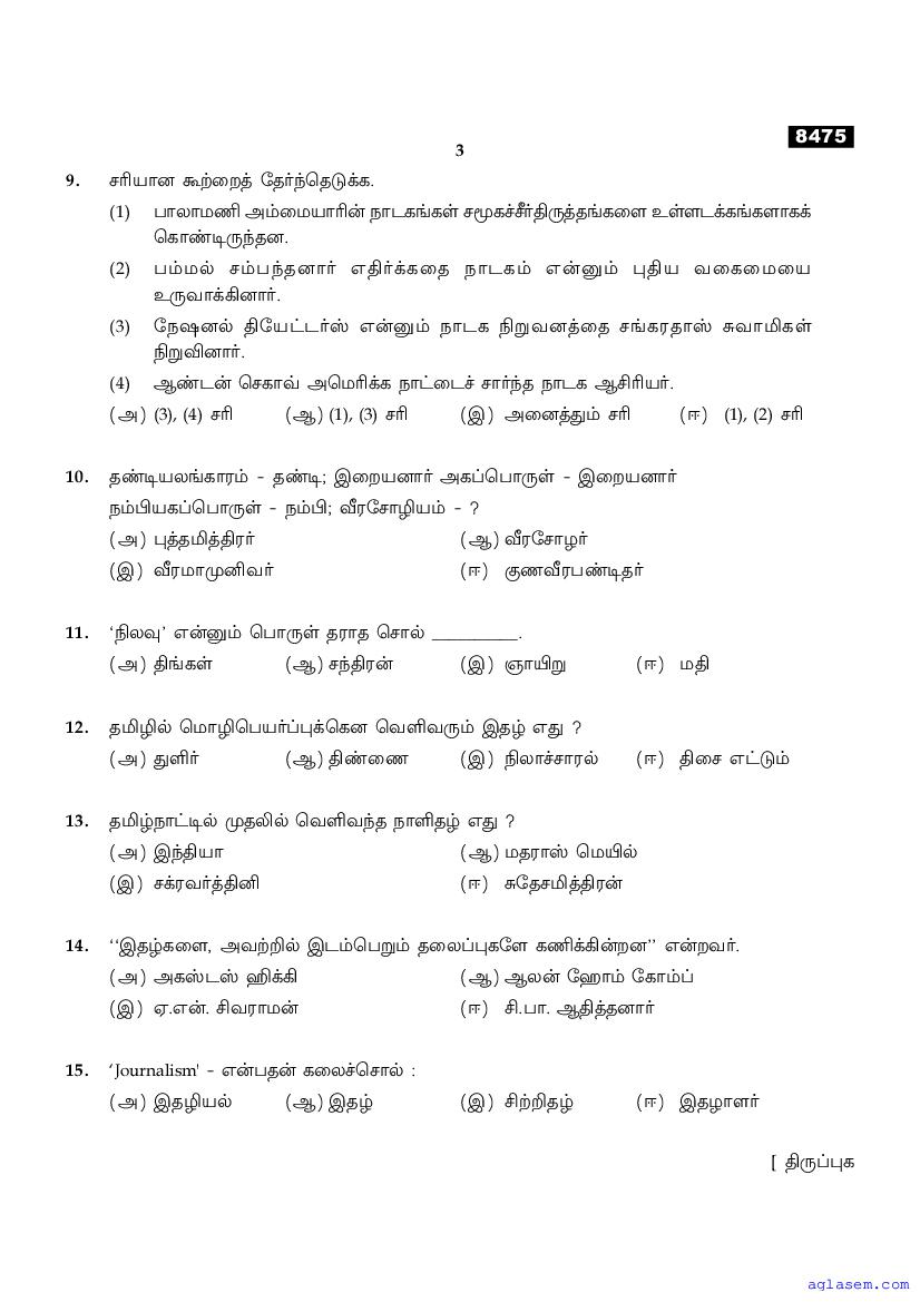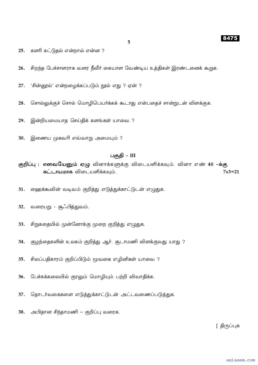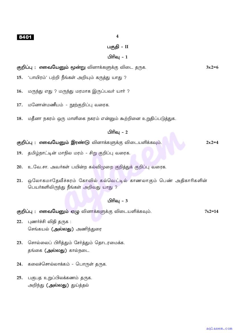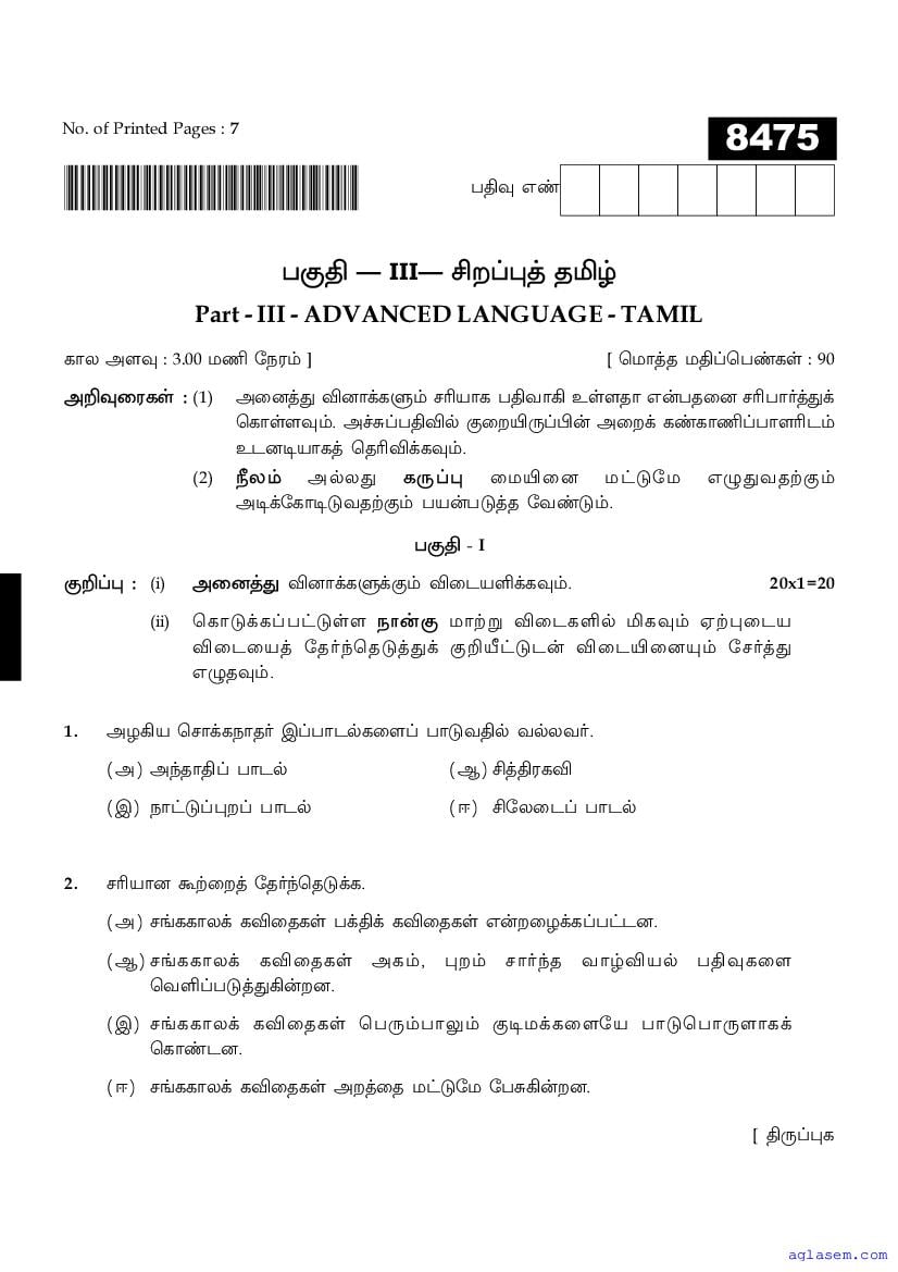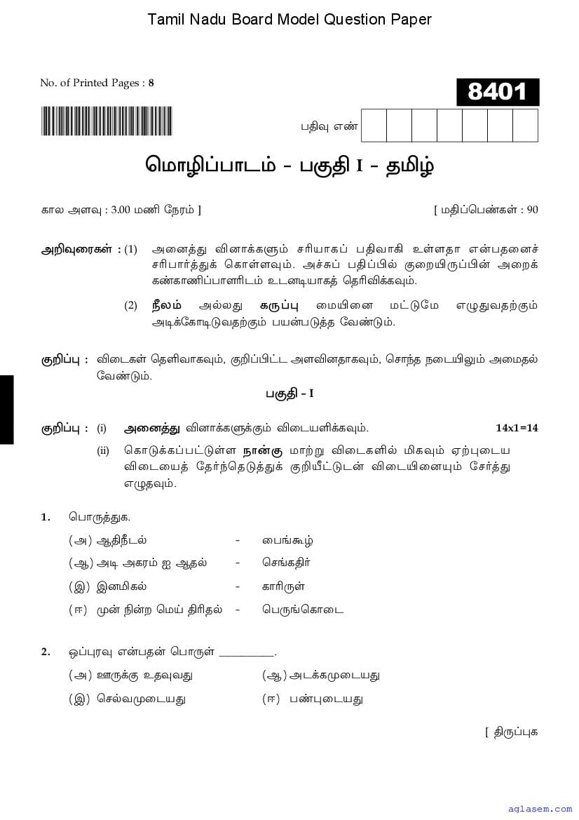 The Tamil Nadu Board Model Paper for class 11 Tamil is as follows.