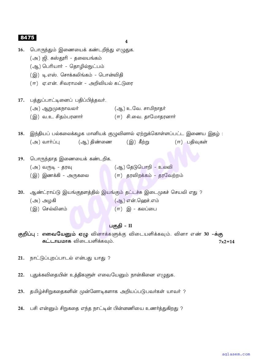 | More Sample Papers for This Board | Tamil Nadu Board Model Question Papers |