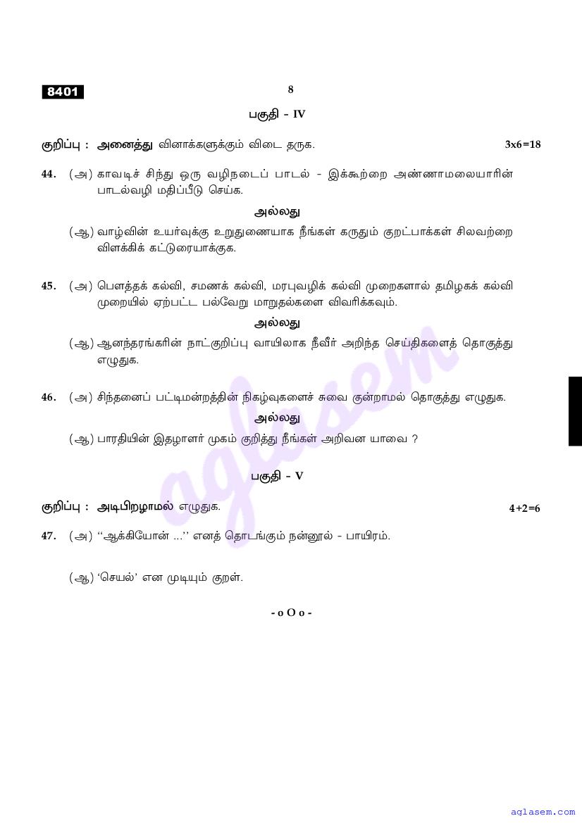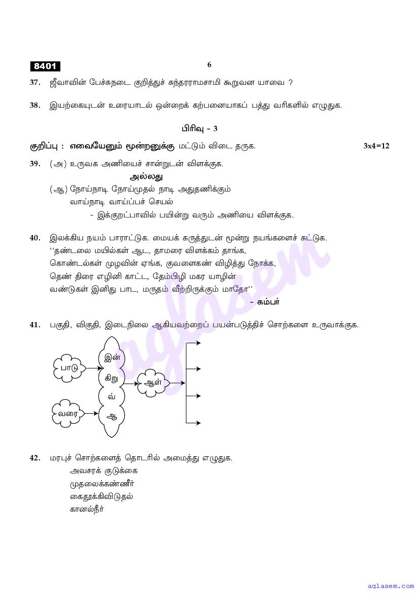 | Study Material Here | Tamil Nadu Board Model Question Paper for Class 11 Tamil |
